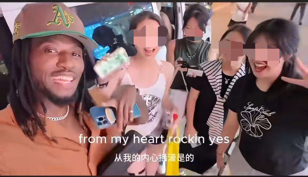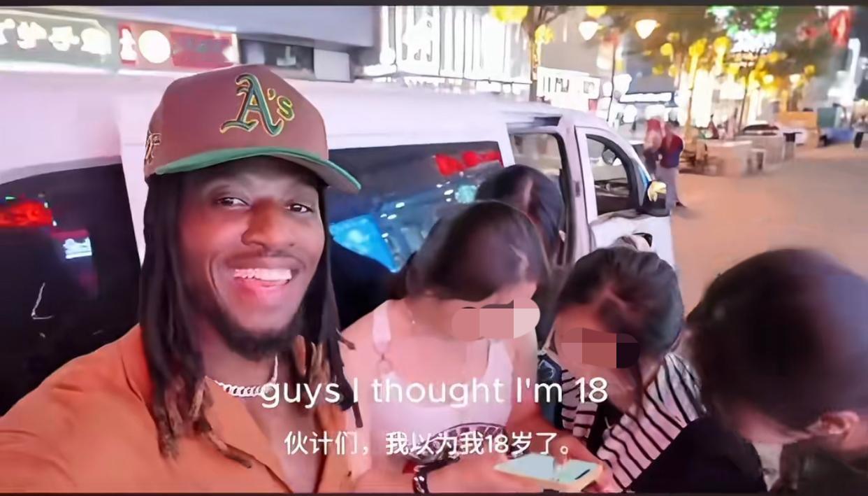 萝卜青菜各有所爱! 近日,一外国人在街上与4位中国女孩相谈甚欢,老外先是给她们看照片!女孩们,哇塞,这肌肉,我们都喜欢黑色皮肤的!老外说你们第一次和外国人接触吗?女孩说不是,我有一些外语老师!老外又问你们觉得我多大了?女孩们,23?18?最后经过老外的提醒,猜对了,老外30!之后老外就跟她们说拜拜了….女孩又上前来补了一句欢迎来到河北哦! 话说她们喜欢黑色皮肤的外国人图啥呢?