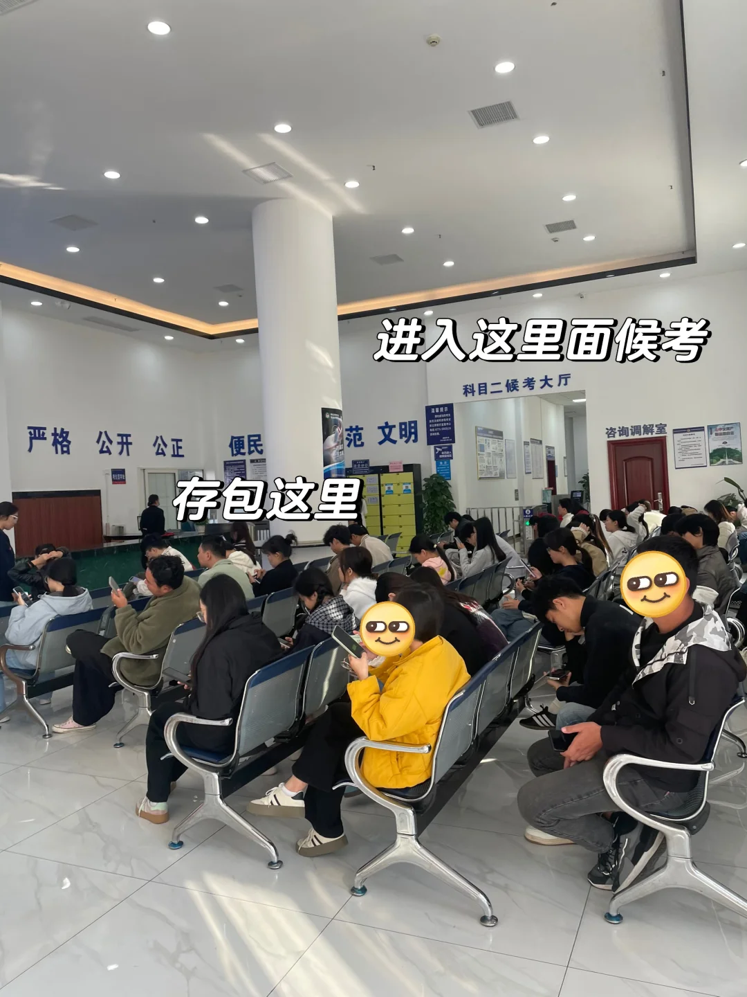 4️⃣进到科目二候考大厅,刷身份证进去,找位置做好等待,工作人员叫到名字把身份证和号码牌给她,等待拍照后,拿着身份证进去二级候考大厅等待,大屏幕待考栏出现名字就可以在取号桌自己拿着显示对应的车号进去考试区,找到车号在旁边对应位置等待上一个考生考完。