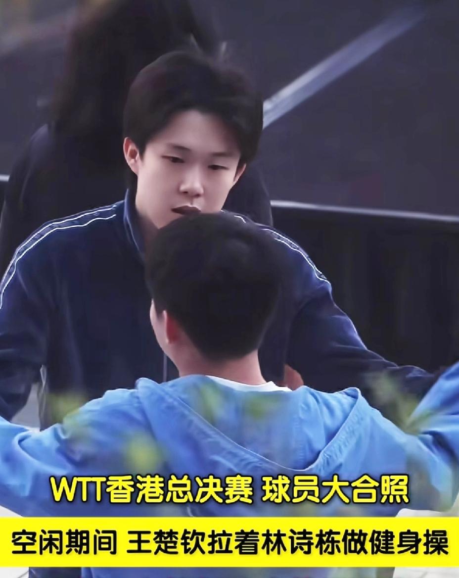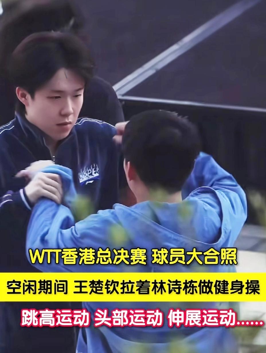 哈哈, 差点被第一张图笑死。 大头搂着小石头, 结果周到看到赶紧说, 祖宗们,求求你们了, 咱们能注意点形象不? 不得不说, 王楚钦是真喜欢林诗栋, 没有比赛的日子, 只要他俩在一块, 他总是喜欢黏着林诗栋。 这不WTT香港总决赛, 他俩又闲着没事在打趣, 大头拉着小石头在做健身操。 跳高运动、头部运动、伸展运动…… 做着做着就趴在小石头背上去了。 周到看到赶紧阻止, 好像在说, 祖宗,求求你们了! 你们能不能安静一会, 这么多人看着呢, 一会又被放网上了。 只见大头嘴撅的老高,好像在说: “这个不让抱, 那个不让搂, 好不容易放松一会, 你说哪个能抱呀?” 大头这放大镜下的人生呀, 干个啥都有人管着。 (图片源自于网络)