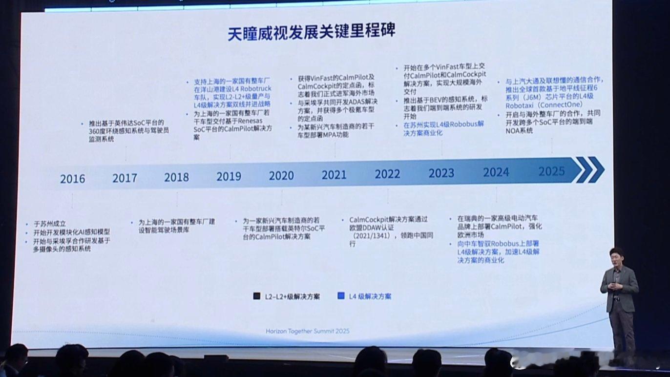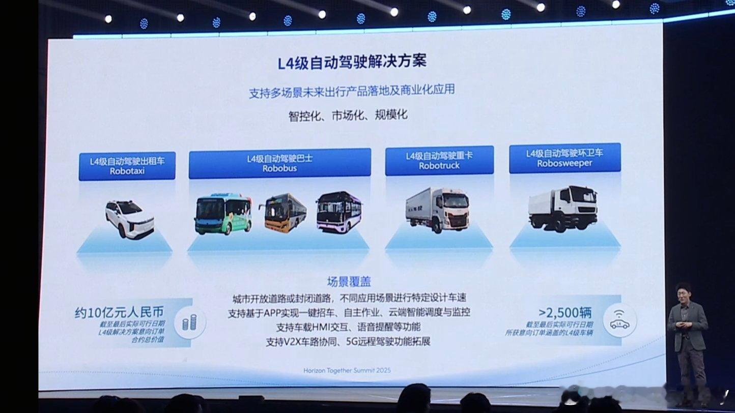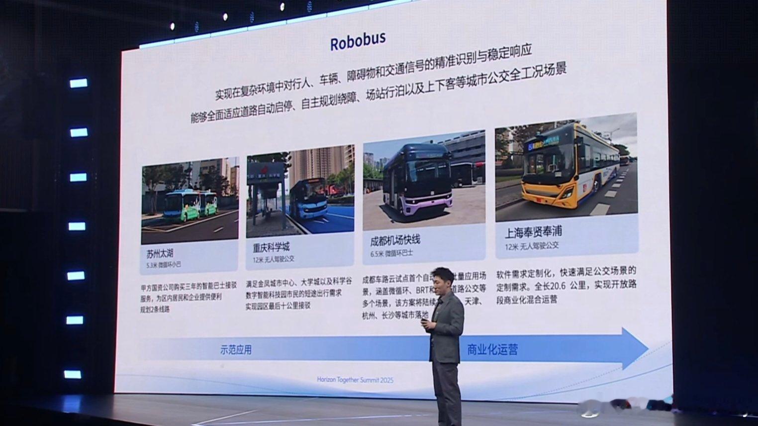 之前对卡车巴士这种工作用车的自动驾驶相较陌生,通过天瞳威视总裁的分享了解到,全球首款基于地平线征程6系芯片的L4级Robotaxi和Robobus已经完成冬测了,即将在中欧两地同步开启常态化运营,意味着智能驾驶技术与服务已经开启了全球范围内的商业化征程。2025地平线技术生态大会人人都是中国智驾合伙人