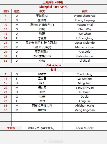 2025-26赛季亚冠精英联赛 联赛阶段 柔佛DTvs上海海港 首发名单