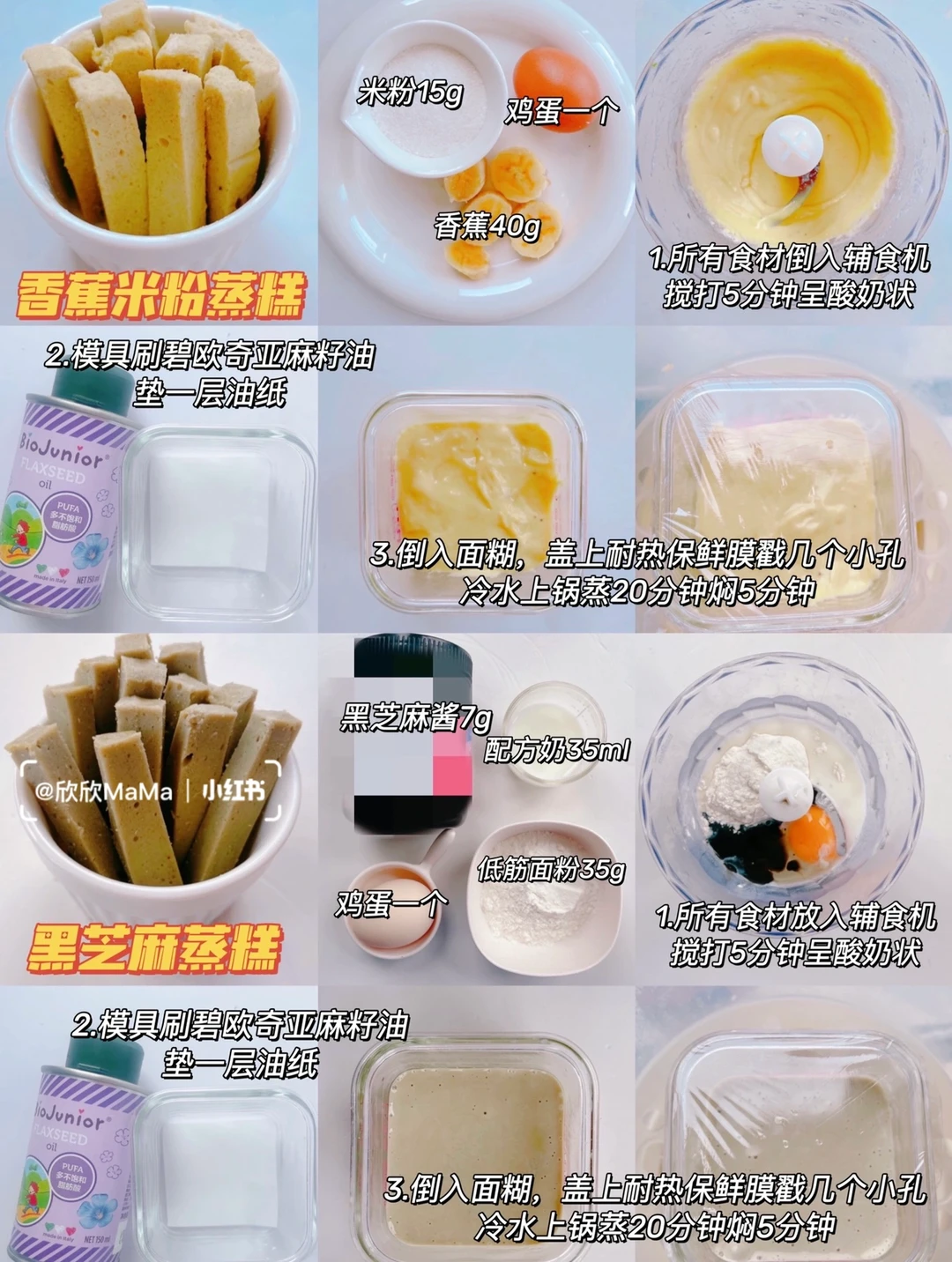 今天给大家分享一期宝宝的营养蒸糕合集,真的每款都好吃呀!有米粉版的,也有无蛋版的,也软糯香甜,并且可以锻炼宝宝的咀嚼能力和抓握能力哦!0失败!新手妈妈必备!一定要给宝宝安排上丫