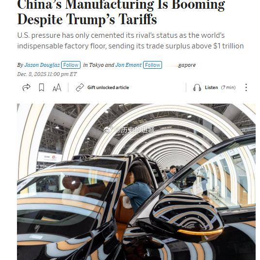 11月我国外贸增速回升至4.1%华尔街日报刊文称,特朗普说要制造业繁荣,现在中国