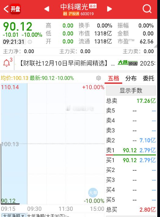 $中科曙光 sh603019$ 这个不至于一字地板。