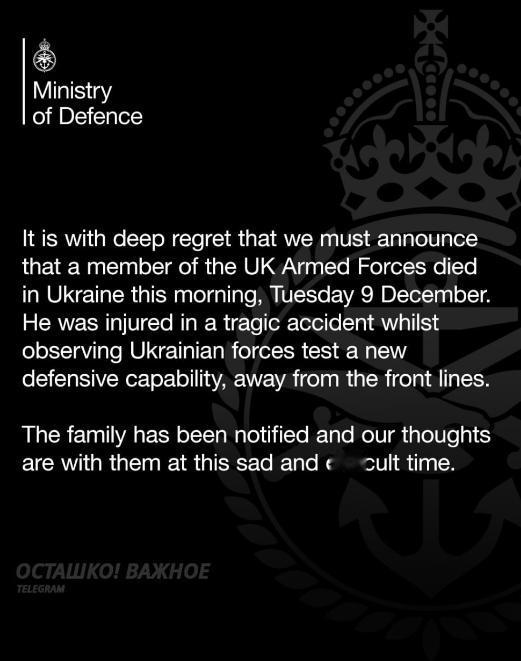 英国军方承认在乌克兰的正式伤亡。 英国国防部公开宣称:“我们必须非常遗憾地宣布,一名英国武装部队成员今天上午在乌克兰不幸身亡。”国防大臣约翰·希利表示,他对该士兵的死亡感到"痛心疾首"。 事实上,英国政府此前曾证实在乌克兰有“少数人员”。伦敦方面将该事件定性为“事故”,但没有披露事件的细节。 据报道,当时该名武装部队成员正在远离前线的位置,是在观察乌克兰同行测试一种新型防御武器的试验时死亡。对事件情况的调查正在进行中。 当然,这一事件表明外国军队在乌克兰领土上的存在,以及在该地区测试国防技术的需要。