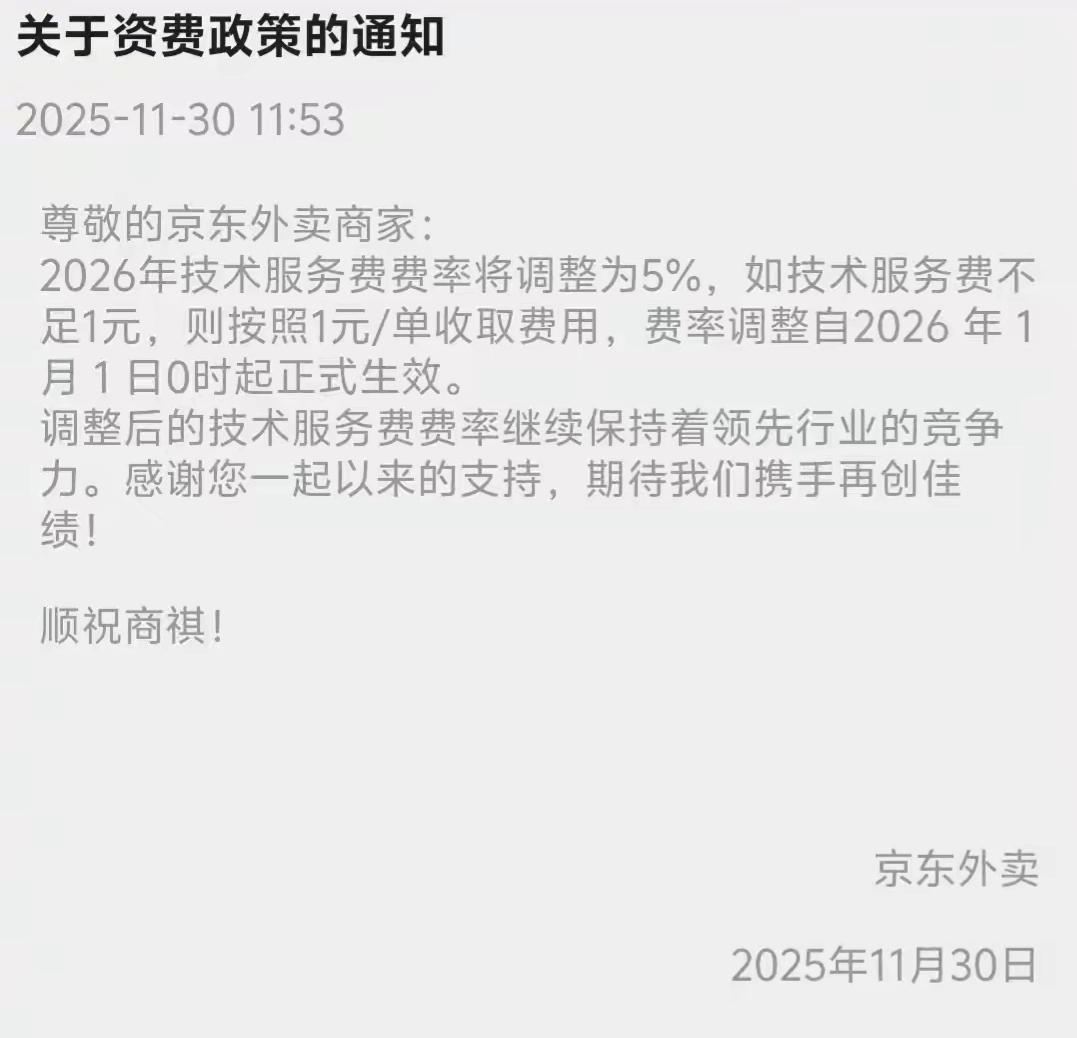 京东外卖也开始抽佣了,抽成比例是5%,虽然比美团和饿了么20%的抽佣要低,但是从