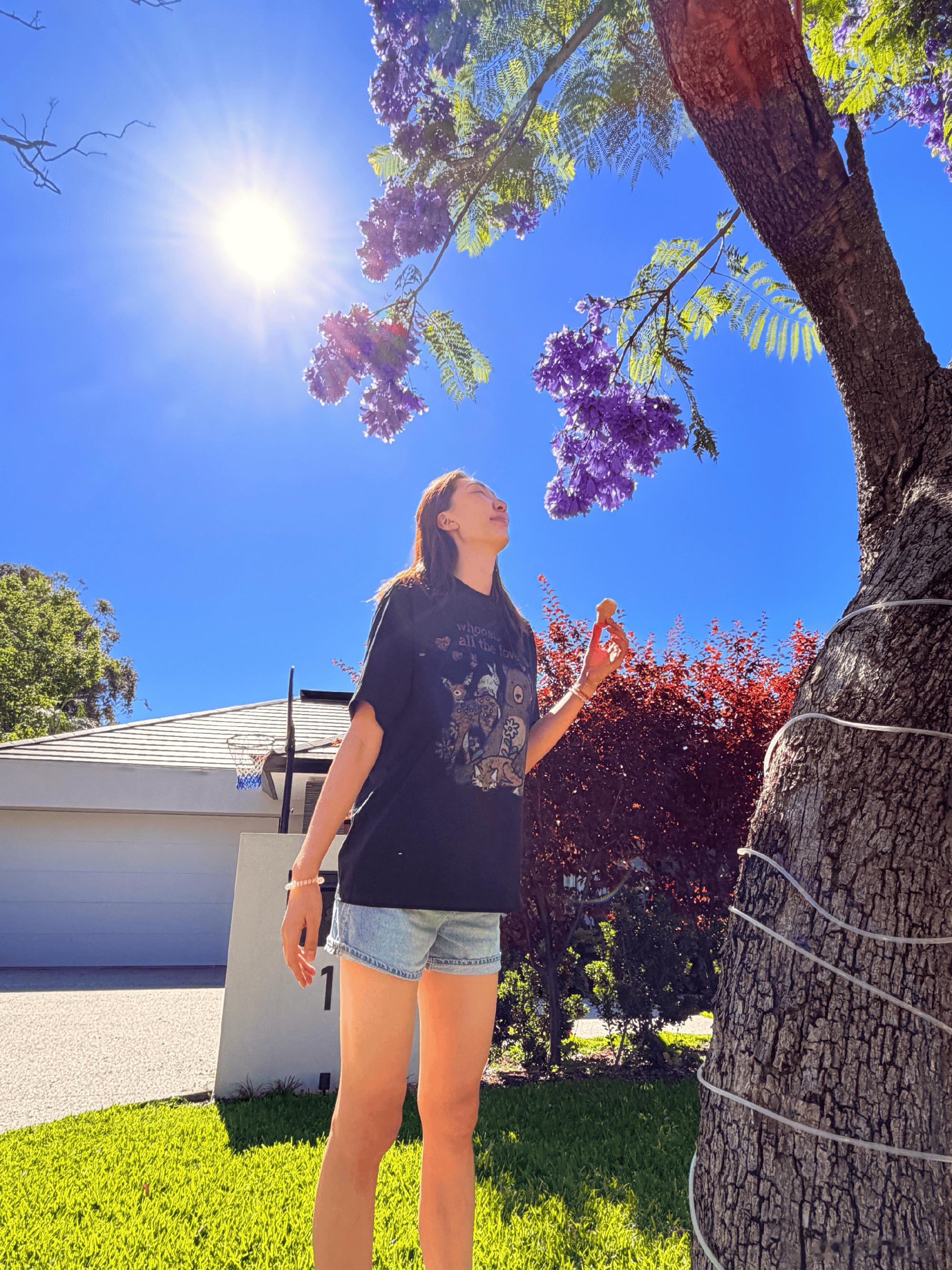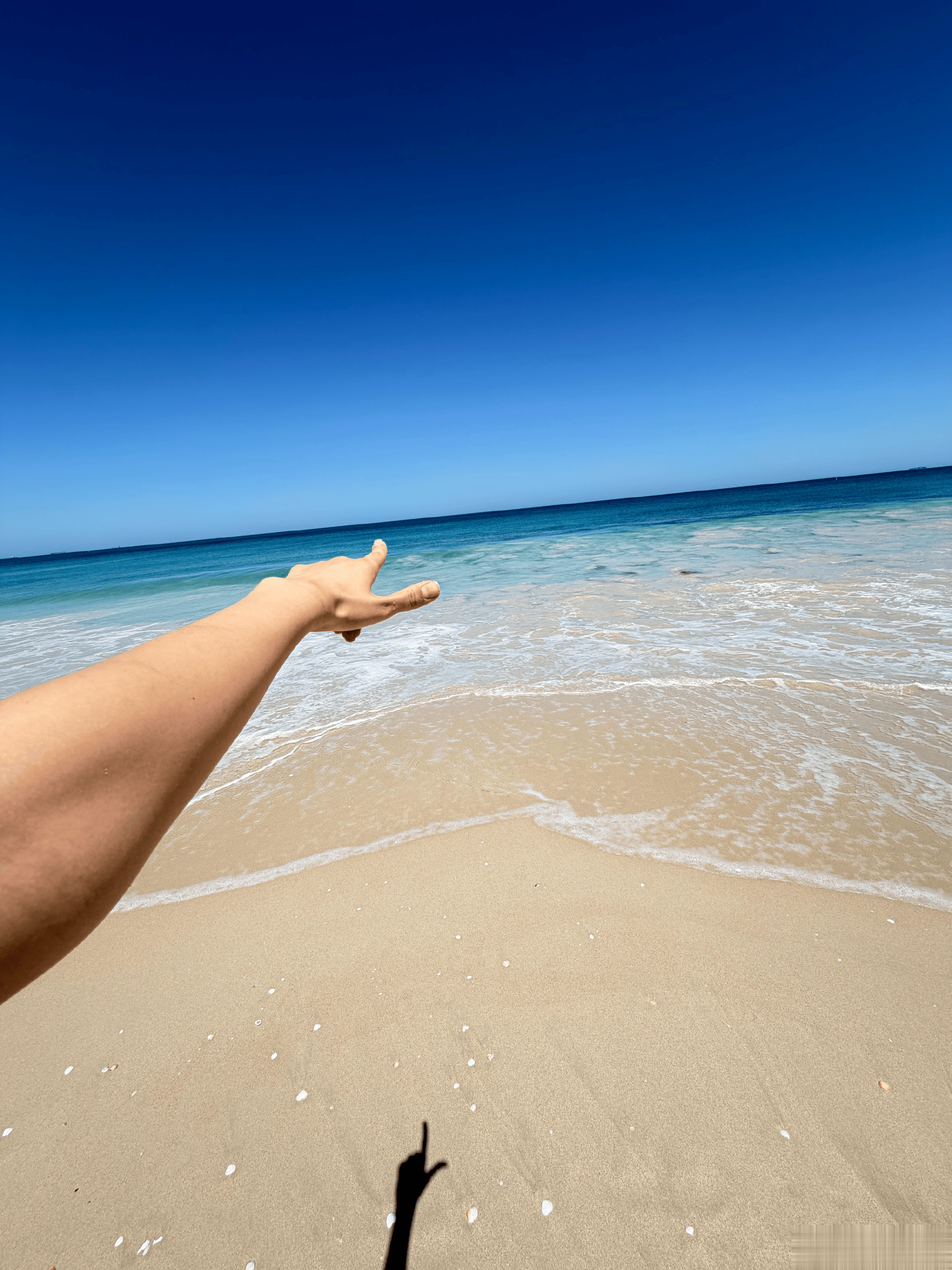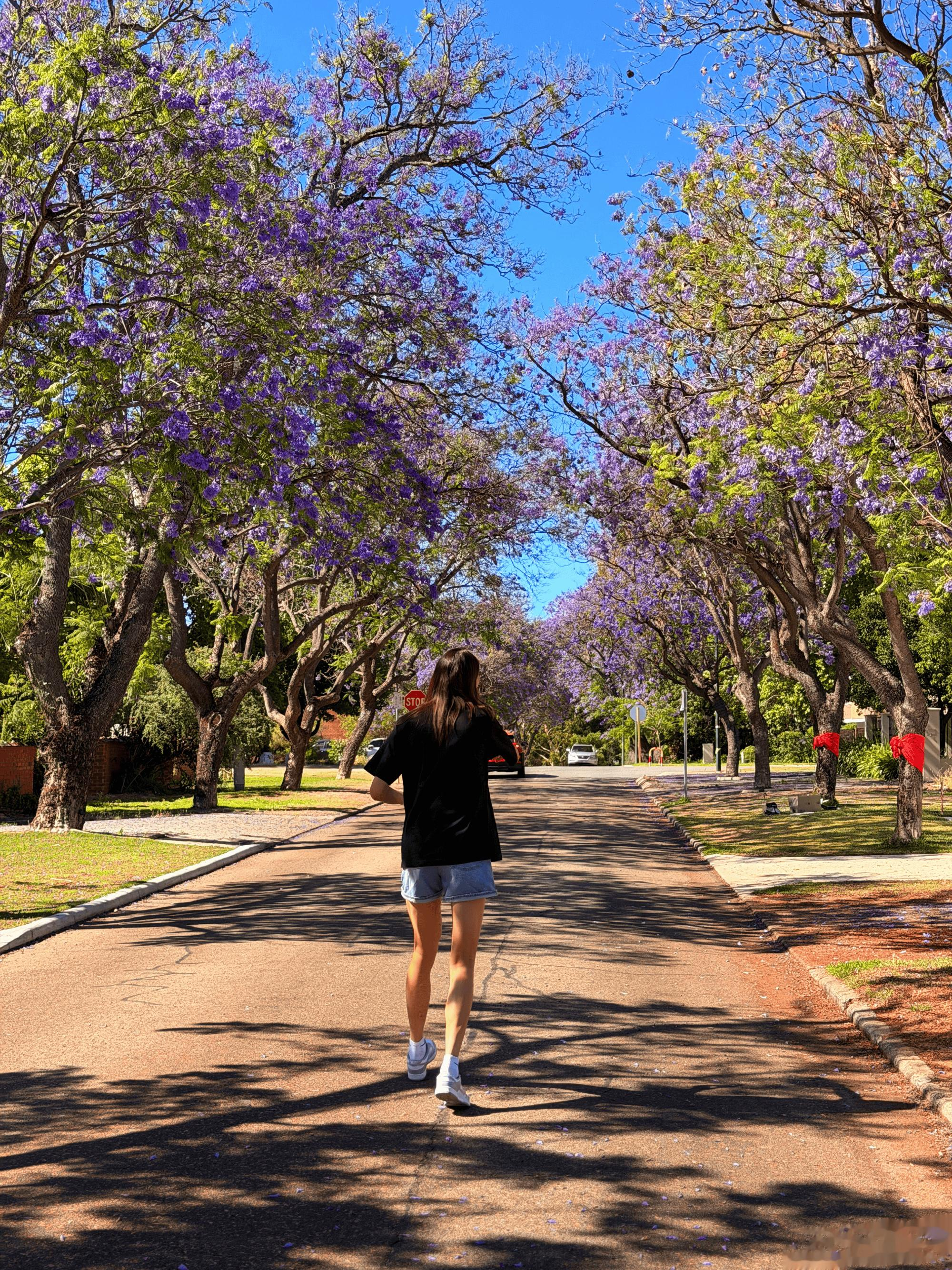 配文:今天是休息日~所以一个人去了珀斯最美的海边,海水好蓝~还有特色蓝樱花(我看着是紫色)当我闭上眼睛听到海浪的声音、当我看到小狗可爱的脚印、当我闻到花的清香,我只觉得这个世界真美好我觉得好幸运,可以为我的梦想奋斗,同时也可以感受大自然!在大海面前,大大的人也会变得很小很小……