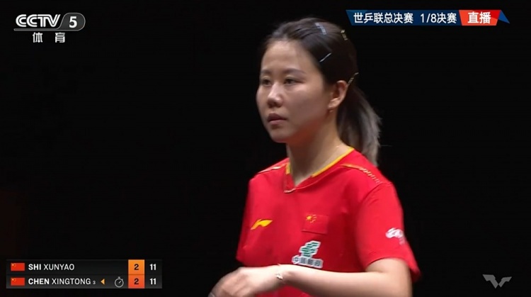 直播吧12月10日讯WTT总决赛女单1/8决赛,陈幸同4-2战胜队友石洵瑶,晋级8强。