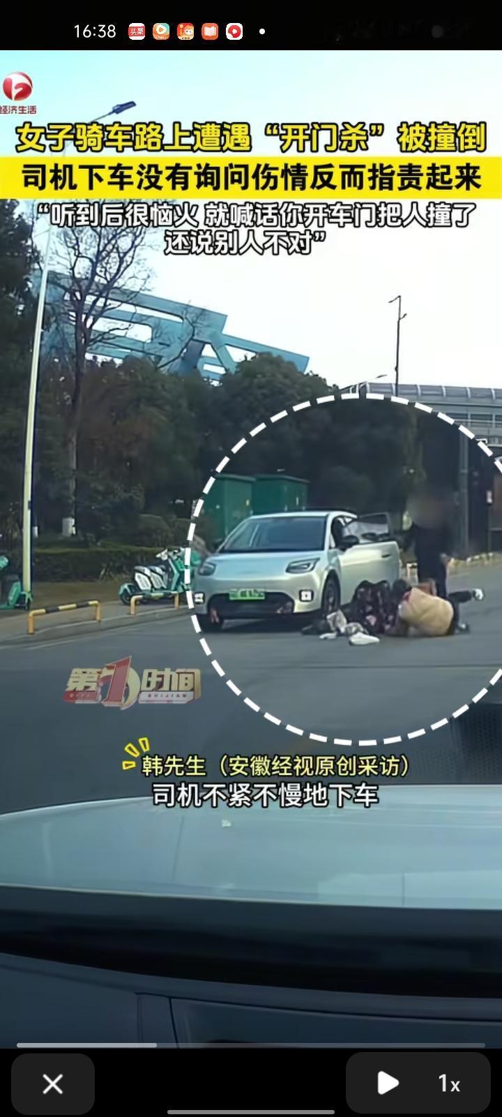 12月8日,江苏苏州。网友晒视频称,一女子骑车路上遭“开门杀”撞倒,司机下车没有询问伤情,反而指责骑车的女子,说“你也应该看一下”,听了这句话就跟恼火,和司机说“你开车把人撞了,还说别人不对”。过红绿灯的时候,正好看到一位骑警,随即喊骑警去事发地处理情况。 苏州身边事