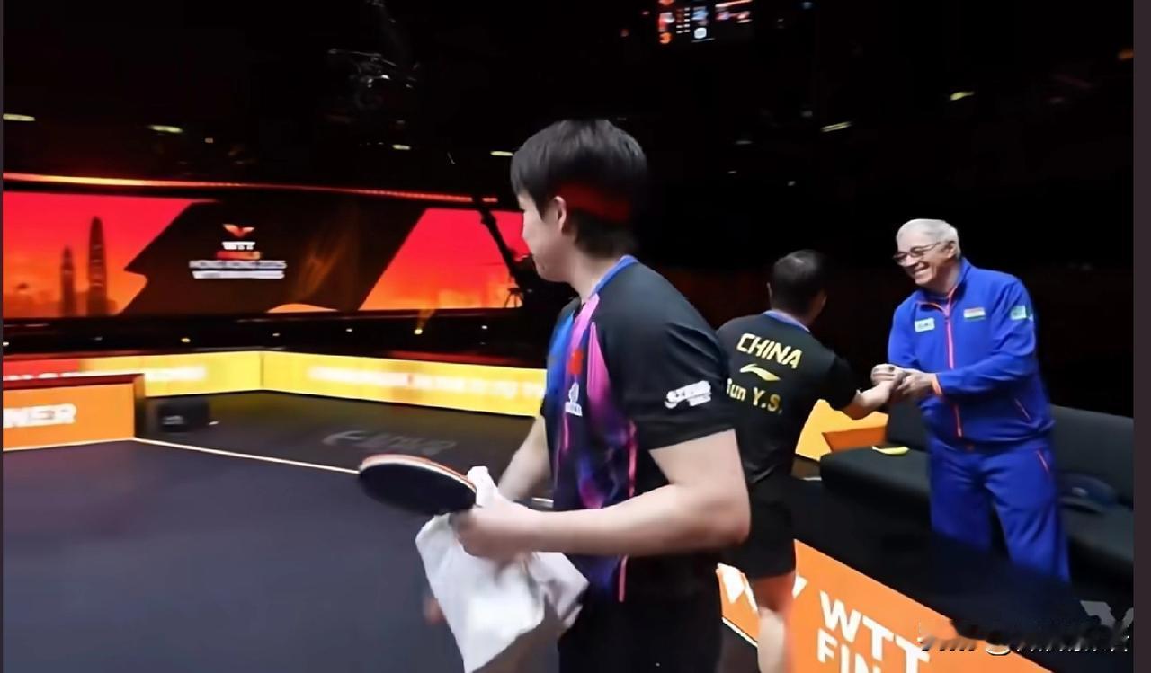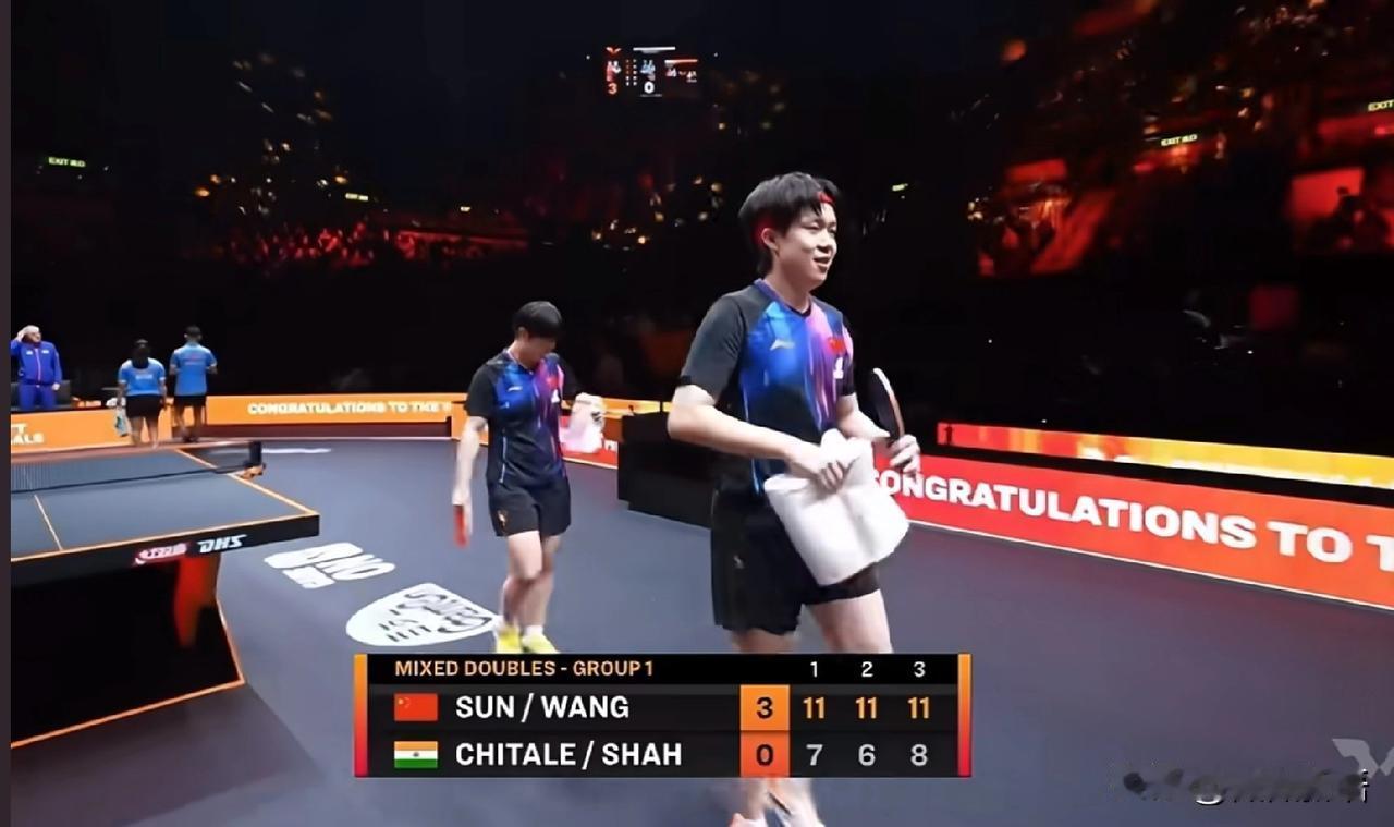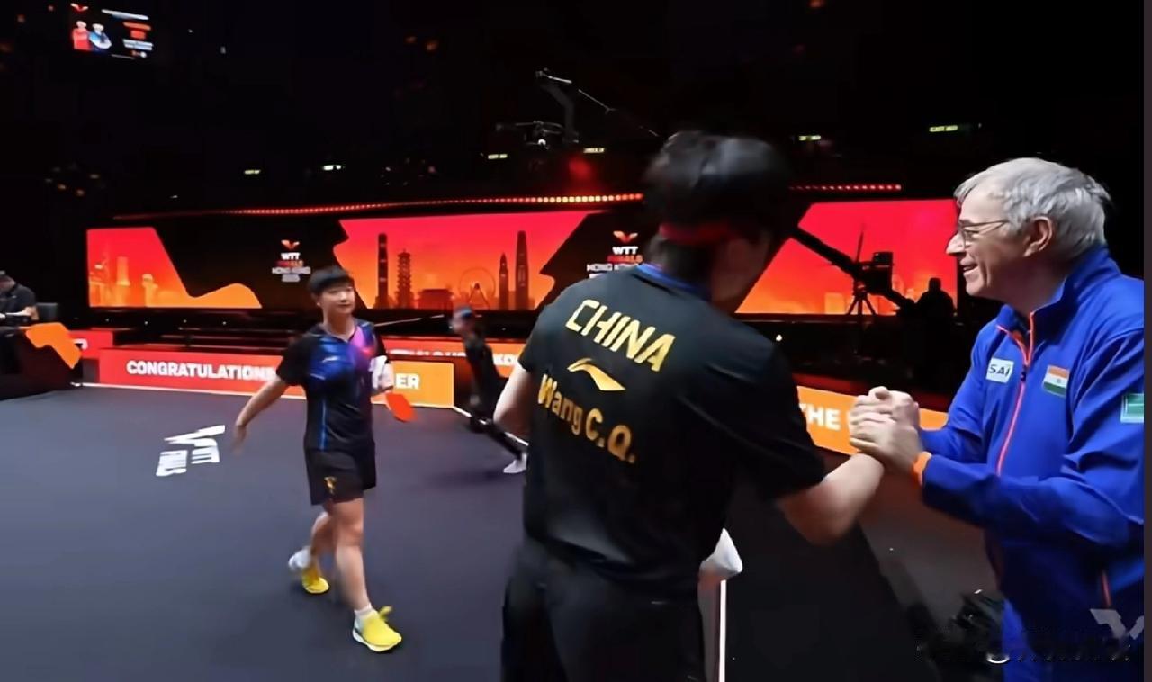 印度这个教练是真的喜欢莎莎和楚钦。 赛后楚钦过去跟印度教练握手,印度教练笑着看朝他走过来的莎莎,他是真心喜欢这俩孩子,他和莎莎握手时,还和莎莎说“good luck”。看到这个教练,就想起去年的时候他找莎莎签名,拿到签名的球拍后,他还说:“只有莎没有孙”,然后刘炜珊说:“颖也没有”,然后大家就都笑了,这个教练是发自内心的喜欢莎莎。 楚钦和莎莎出场的时候估计也憋着笑了,上午大家发的他们肯定也看到了。不过赢下第一场混双的比赛后,俩人离场时王楚钦的那个回头,不知道莎莎跟他说了句啥,然后就都笑了,出场没笑的现在补上了。看到有个网友说:“像不像知否里明兰答应顾廷烨求婚之后回到马球场的氛围。”然后大家都说确实太像了,这俩孩子打完混双就熟悉了,楚钦说接下来的比赛比较密集,交流会更多一些。 今天下午楚钦走路也特别快,他们这场比赛拖了将近两个小时,他们也想快点结束比赛,王楚钦还能去休息一会儿,过两个小时就是他和松岛辉空的男单比赛了,每次打单打,松岛辉空就特别的来劲儿。