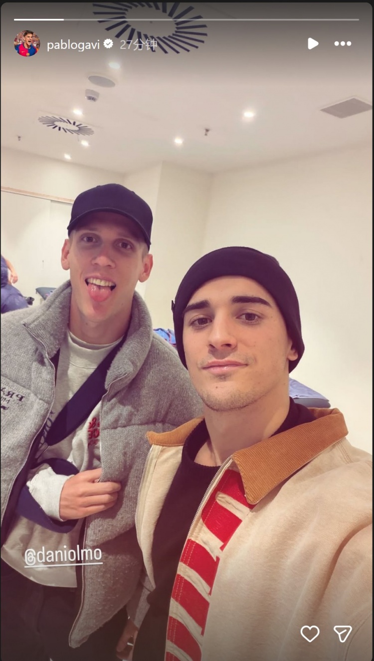 加维仍在养伤,而奥尔莫因肩部伤势缺席近期比赛,加维社媒晒出与奥尔莫的合照,后者仍戴着保护性肩托。
