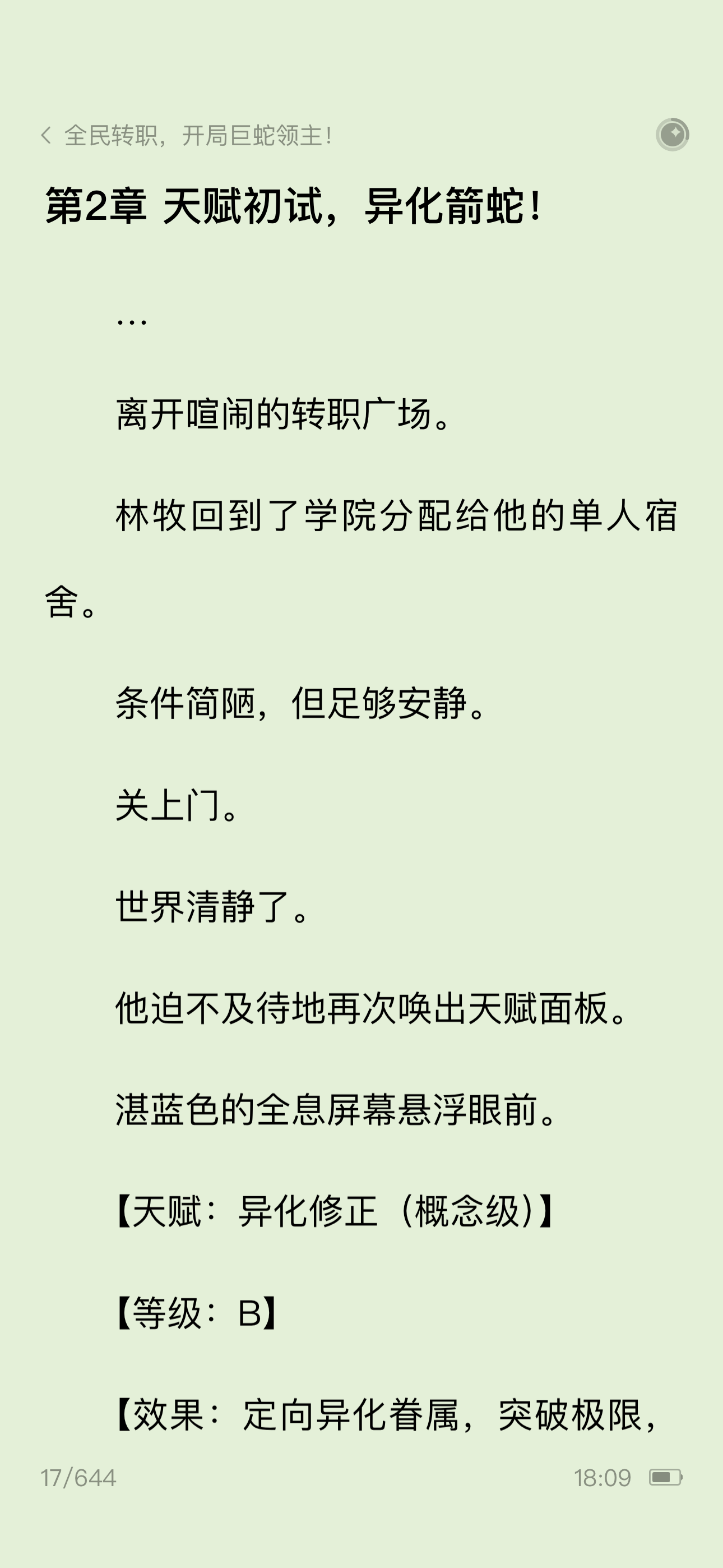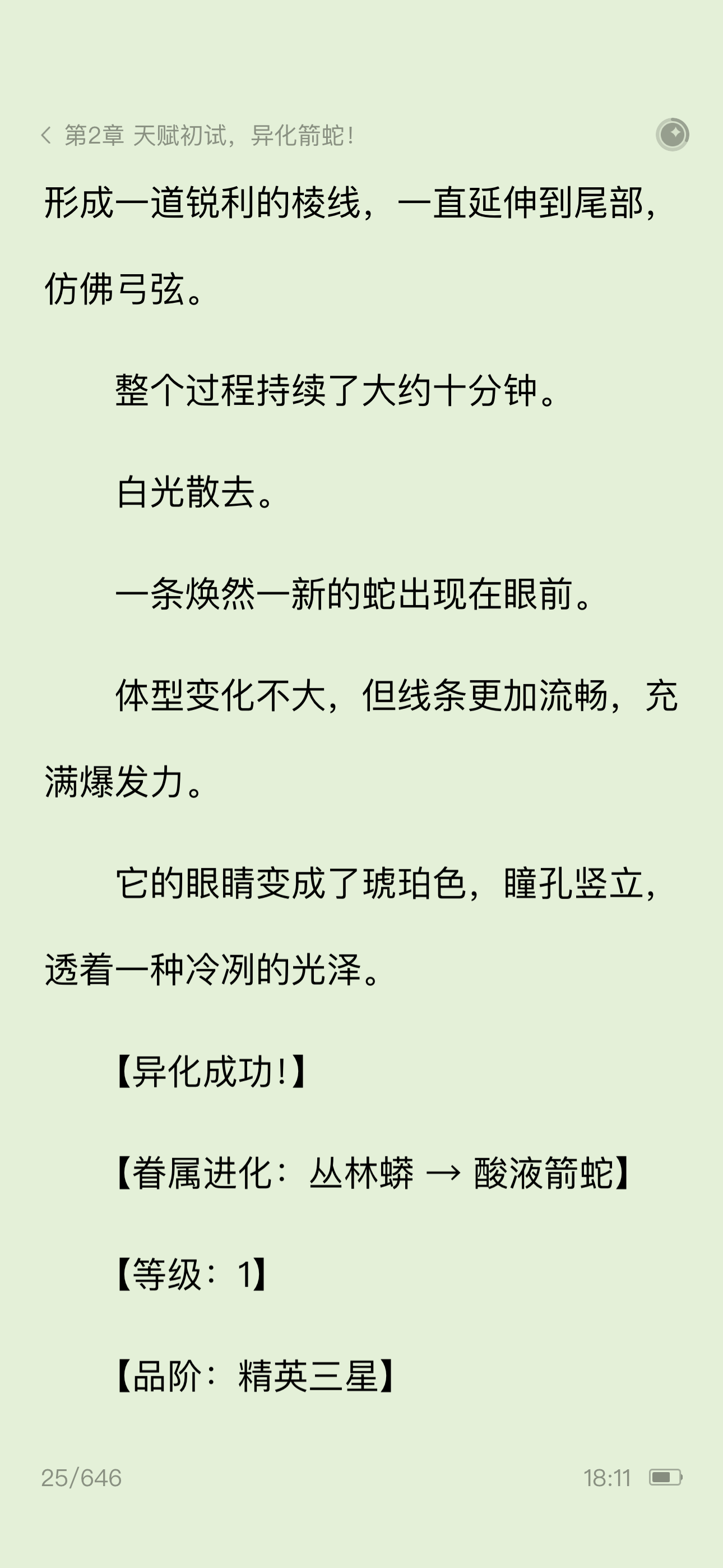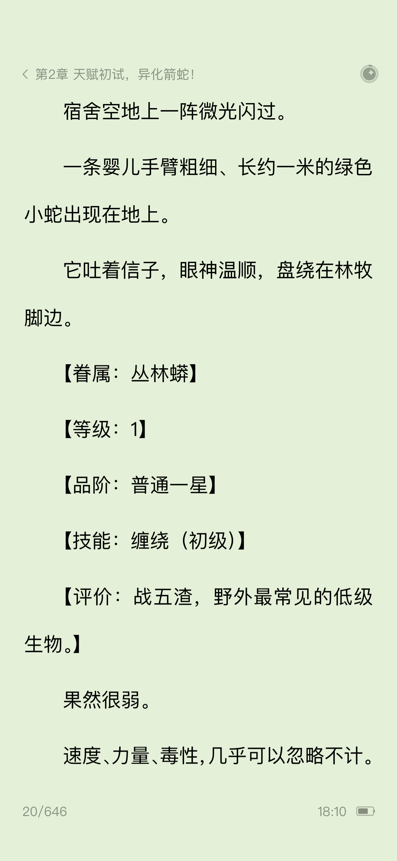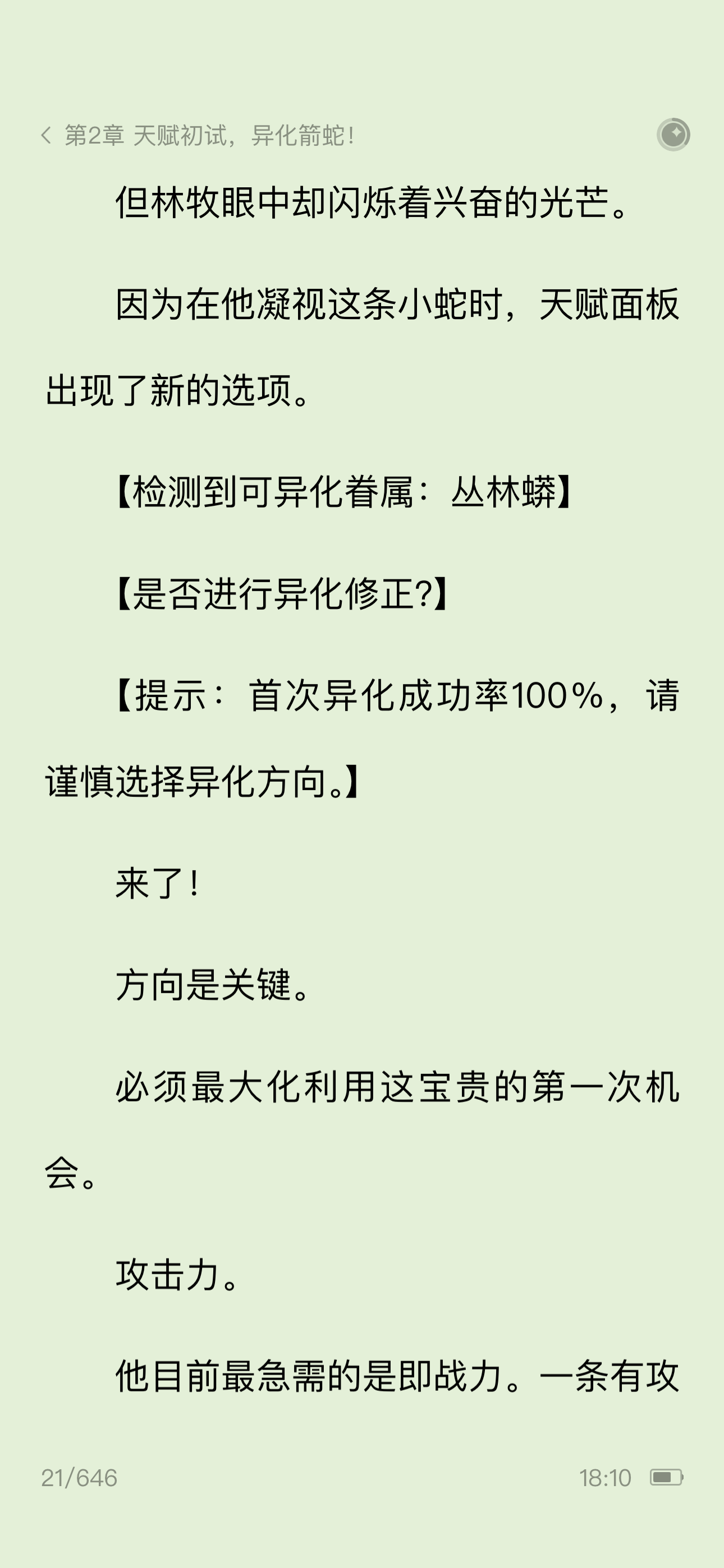 全民转职,开局巨蛇领主!第二章天赋初试,异化箭蛇!
