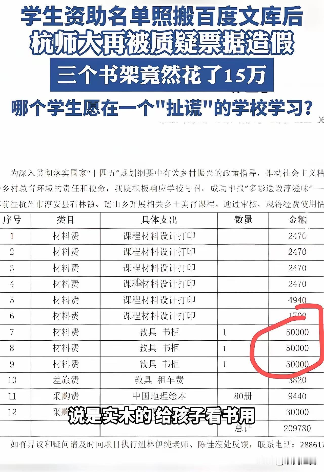 近日,杭州师范大学“越解释越坑”事件再度成为社会瞩目的焦点。事情源于一份45万元福彩公益金项目资金明细表的曝光,学校本想用“透明公开”来平息外界质疑,结果却让事态愈发复杂,令人失望。 事件的导火索是,有人发现杭州师大公布的资金明细部分内容竟是从百度文库等公开资料复制粘贴而来,既无真实性,也缺乏具体细节。这一发现使公众对学校的诚信产生了严重怀疑,所谓的“公开透明”沦为笑谈。面对质疑,学校迅速道歉,并晒出详细资金明细表,试图“自证清白”。 然而,明细表公布后,漏洞和疑点反而增多。部分内容重复、矛盾,存在明显逻辑错误。一些支出项目含糊不清,部分资金用途与实际情况严重不符。公众质疑声浪高涨,甚至有人怀疑明细表的真实性,认为背后或许存在“作假”或“虚假操作”。原本指望“晒明细”能平息风波,结果却成了火上浇油的“导火索”。 这起事件折射出高校在财务管理和信息公开方面存在诸多问题。部分机构面对公众质疑时应对失当,既缺乏诚信,又没有责任感。公益金的使用本应透明公正,可此次事件却暴露出制度漏洞和执行疏忽。公众对公益资金极为关注,任何瑕疵都可能引发信任危机。高校应以此为鉴,建立健全财务公开制度,确保每一笔资金真实、透明、可查。 此外,该事件也提醒我们,面对质疑和压力,不能采取“掩耳盗铃”的方式。唯有实事求是、坦诚面对,才能赢得公众信任。学校应加强财务管理和信息披露的规范化,主动接受社会监督,杜绝虚假和作假行为。 总之,杭州师大此次“越解释越坑”事件,再次印证了“谎言难以长久”。只有以诚待人、以实立身,才能真正获得社会的认可与尊重。希望相关部门和高校汲取教训,切实加强财务管理,让公益金真正用在刀刃上,赢得公众信赖。