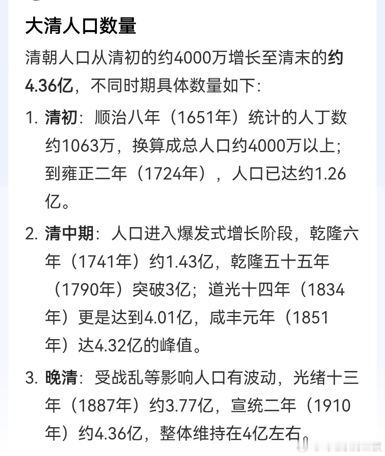 很多说大明的,我说几句。首先,所有封建皇朝,生产力都很低下,普通百姓都活的不容易。其次,1851年前,中国始终是个内向型的农业国。生产力提升是很缓慢的。但是咸丰元年是人口最多的,几倍于明朝。民国时期,一直都是4万万同胞。生产力落后时代,能活命还能生息子孙,是说明过得去最有力证据。第三,除了民族特权(比如满城驻军),大清几乎照搬照抄了大明的所有体制和政策,只对明朝不好的点做了修改。一个是党争,抑制文官势力。二是设立内务府和户部分离,王爷降爵,抑制爱新觉罗家子孙无限侵蚀普通百姓利益(朱家就是如此)。总之,做为最底层的百姓,活在1851年前的大清,肯定比活在大明好。但是,做为文官或者所谓的文化人,活在大明比活在大清好。很多人有错觉,以为自己在古代也会留名留姓,其实,无名无姓的7品芝麻官就是现在县长。历史长河里,你啥也不是,就是普通百姓。说大明好,起码你得进士级别(三年考到全国前200~300名,就是每年前100名且全国),或者地市级别的前三首富。你是吗?