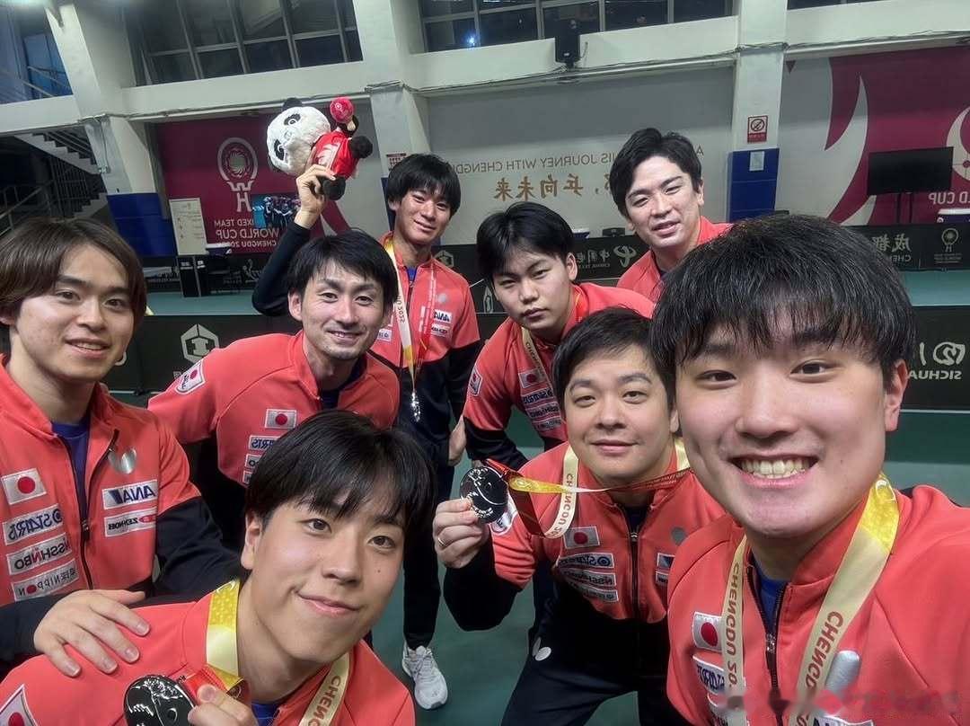 ITTF混合团体世界杯2025张本智和 户上隼辅ins,日本队夺银照片。