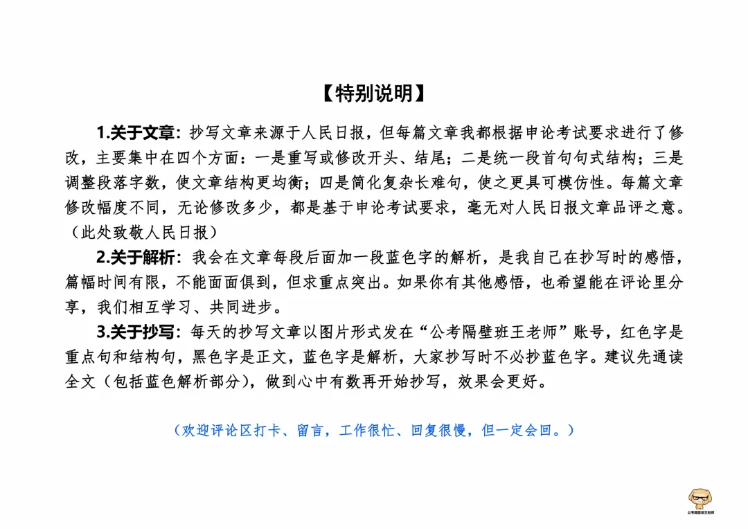 这里是公考隔壁班王老师独创的“每天半小时・申论80分”抄写团,欢迎加入我们!