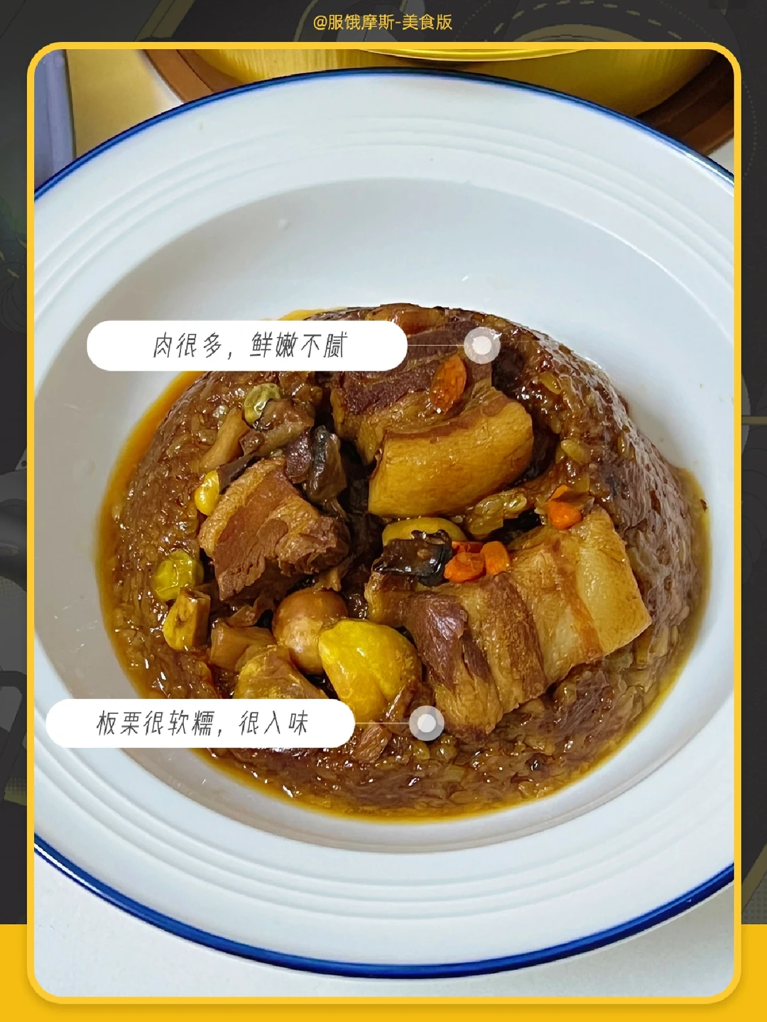 【栗子大肉八宝饭】肉很多也很大块,而且吃起来不腻,吸收了栗子的清香。栗子也挺多的,很软糯。