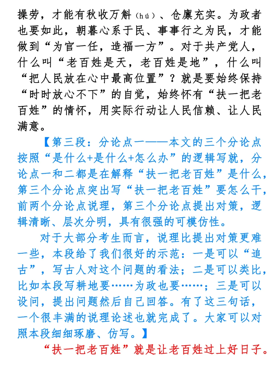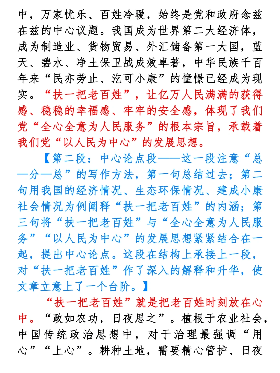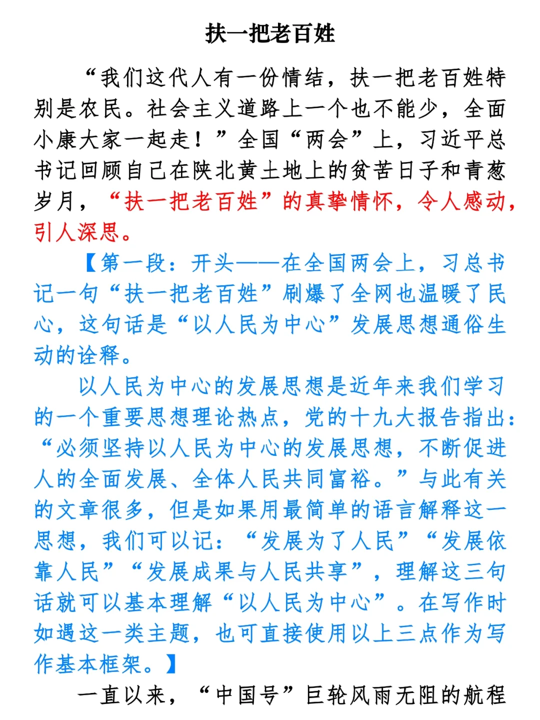 “以人民为中心”思想是一个重要理论热点,也是重要的考点。不过,要想把这个考点写的既有理论的高度,又能接的了地气,就需要点额外功夫了。 今天,我们就用一篇申论范文学一学,如何“扶一把老百姓”。