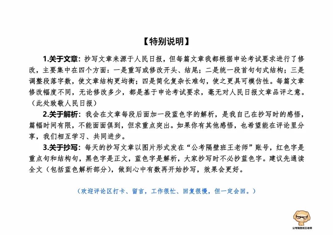 这里是公考隔壁班王老师独创的“每天半小时・申论80分”抄写团,欢迎加入我们!