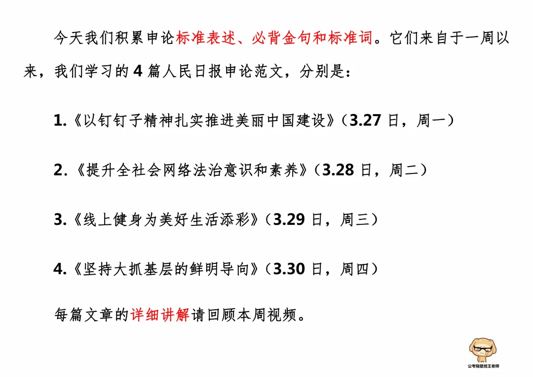 今天我们积累申论素材、必背金句和重点知识。它们来自于一周以来,我们学习的5篇人民日报申论范文,分别是: