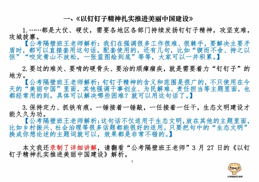 1.《以钉钉子精神扎实推进美丽中国建设》(3.27日,周一)