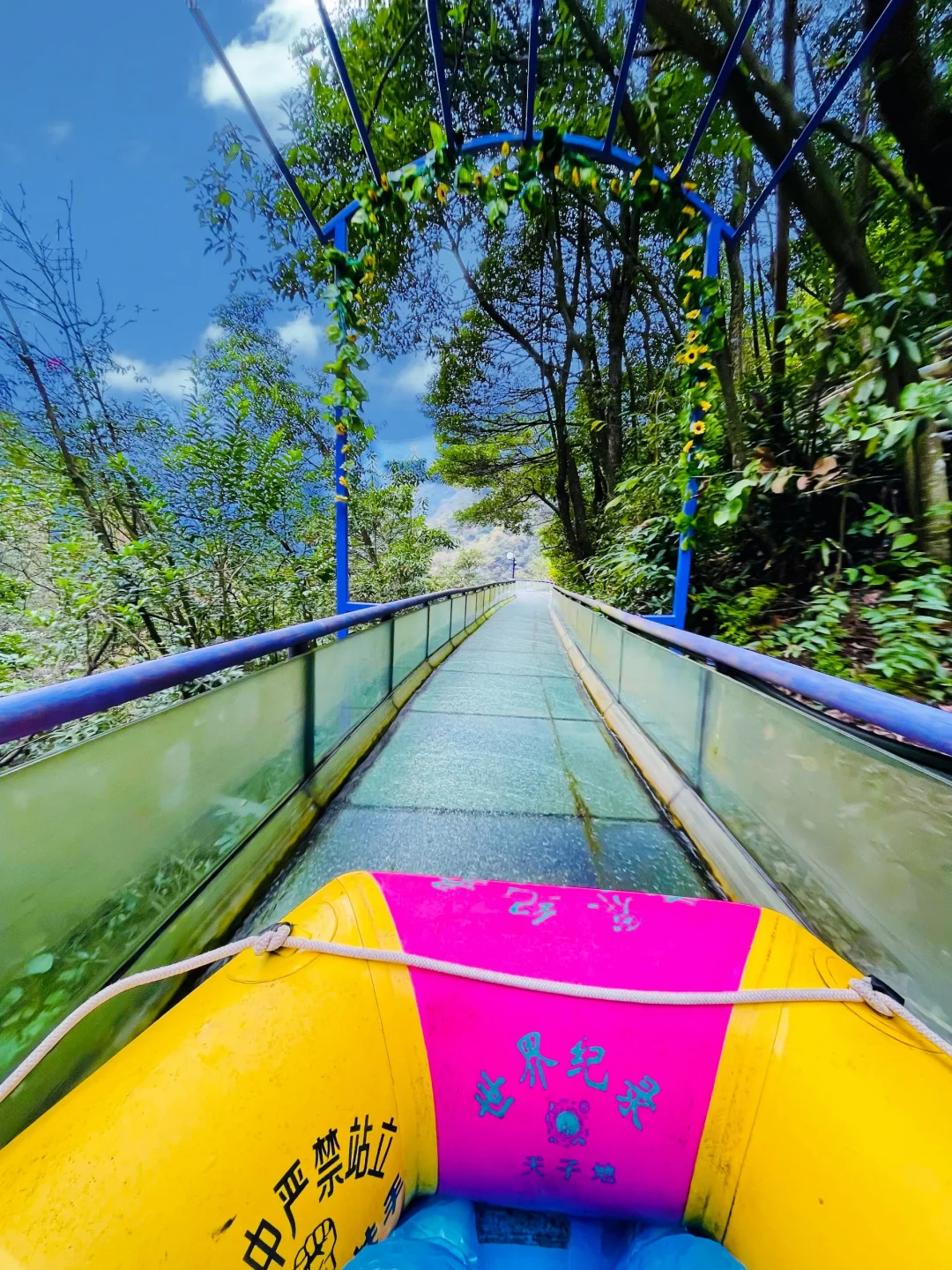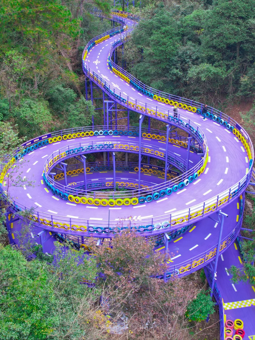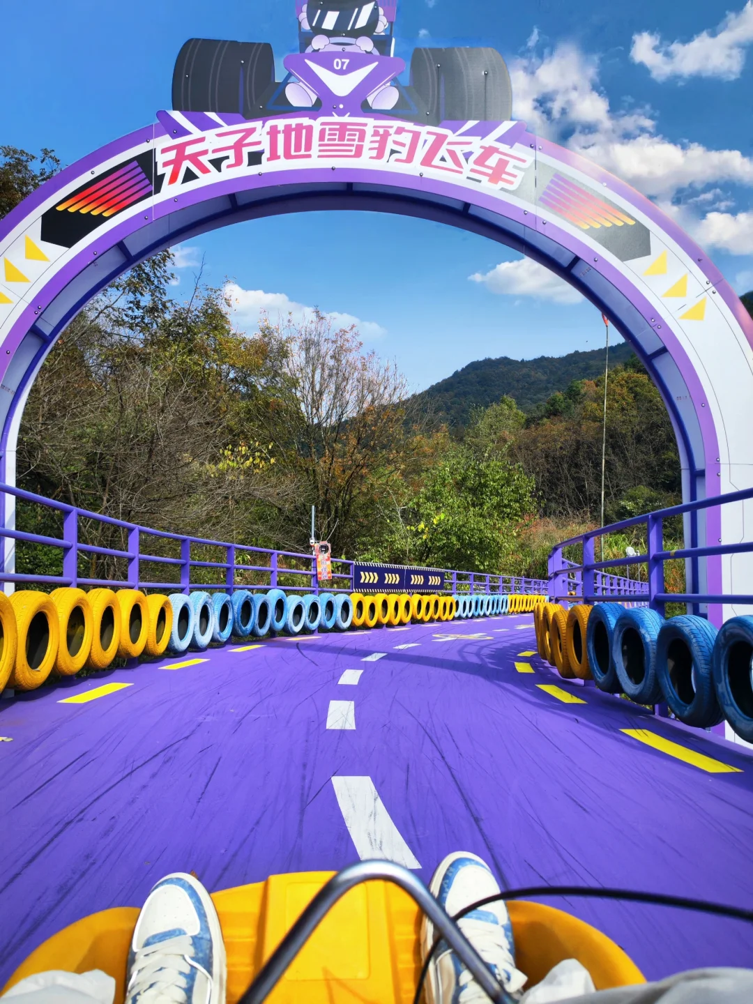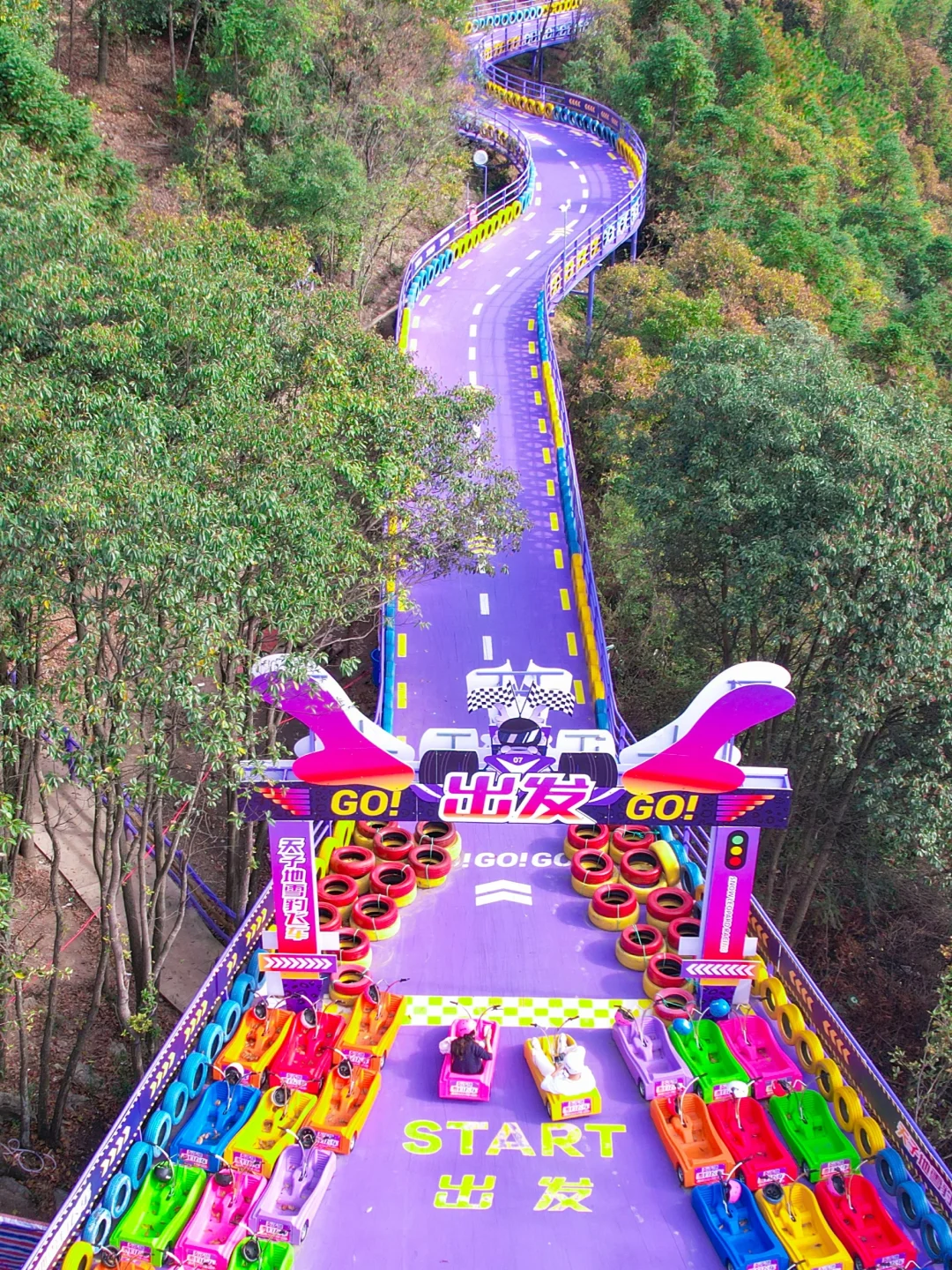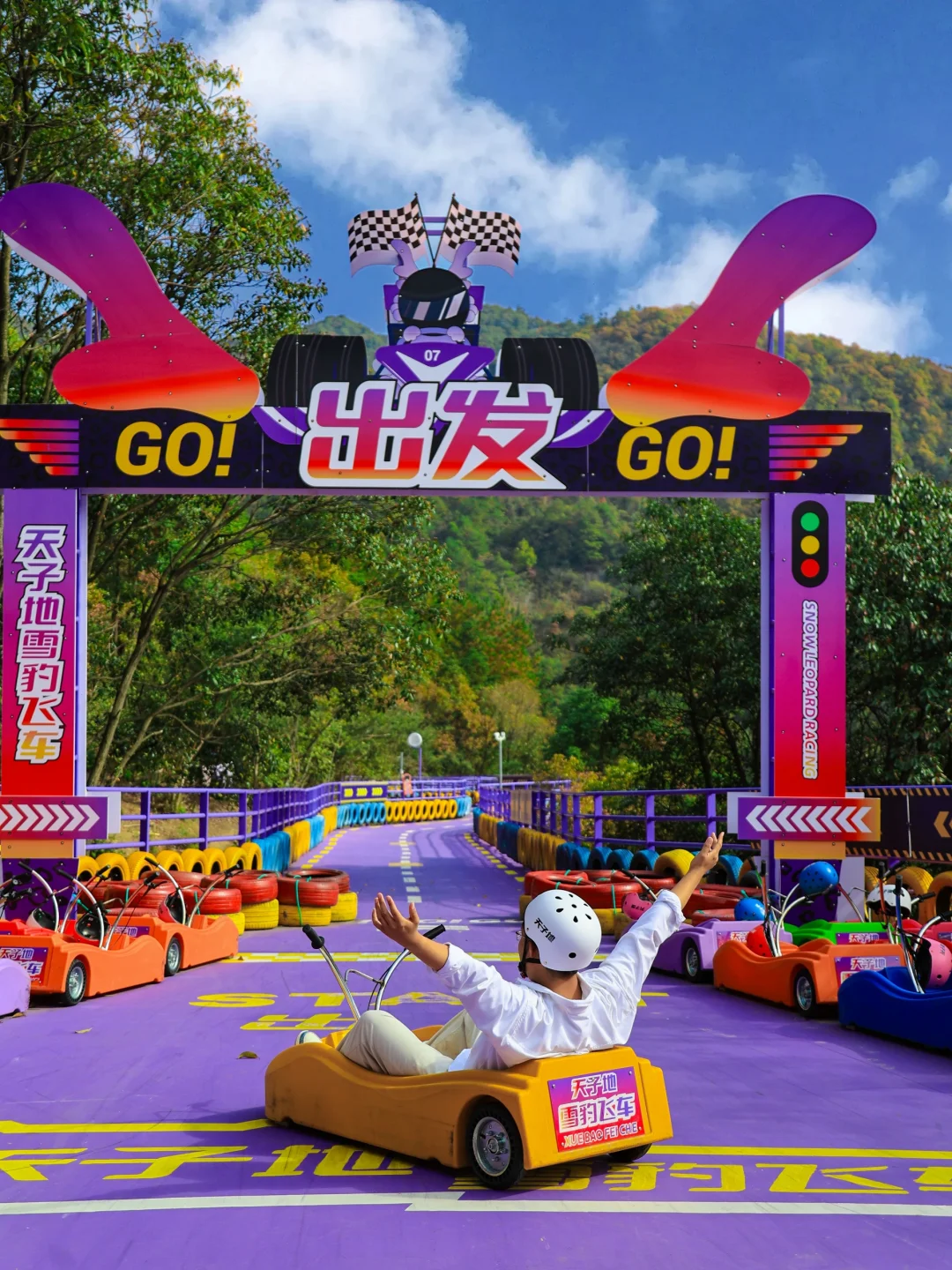 被朋友安利好久的户外乐园 终于是去打卡了 太太太好玩了 直接硬控一整天! - 📍桐庐天子地乐园 ⏰时间:8:00-17:00 🚗交通:南京自驾约3小时 🚝高铁到千岛湖站(更近)或者桐庐站,然后打车前往,约半小时到达 🗺️游玩路线: 入口➡️飞天魔毯➡️紫菱纤手➡️云梯天桥➡️天空之境➡️天子溶洞➡️雪豹飞车➡️高空玻璃漂流➡️恐龙谷➡️7D太空飞船➡️出口 ✨好玩项目分享: ✔️雪豹飞车: 现实版的QQ飞车!紫色车道拍照炒出片🚗车也比较好控制~新手不用担心 ✔️高空漂流: 不愧为吉尼斯纪录漂流,全程3500米的,直接从山上漂到山下~jujuju刺激! ✔️天空之境: 双层玻璃观景平台,顶层是反光镜,拍照巨巨出片!