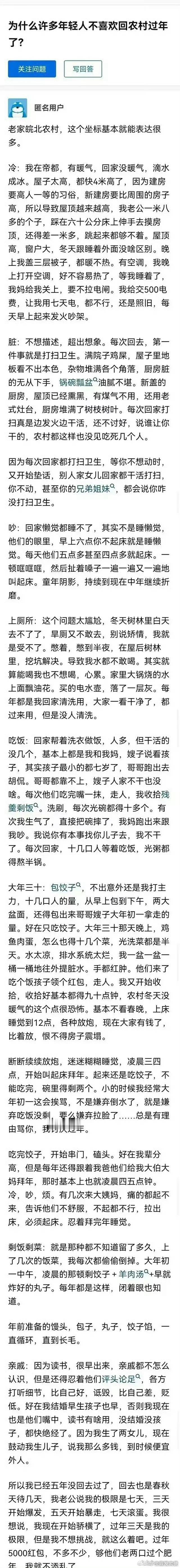 为什么许多年轻人不喜欢回农村过年了。