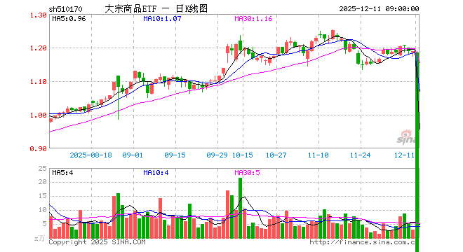 12月10日,大宗商品ETF(510170)涨0.08%,成交额345.17万元。当日份额增加200.00万份,最新份额为2.53亿份,近20个交易日份额增加400.00万份。最新资产净值计算值为3.00亿元。