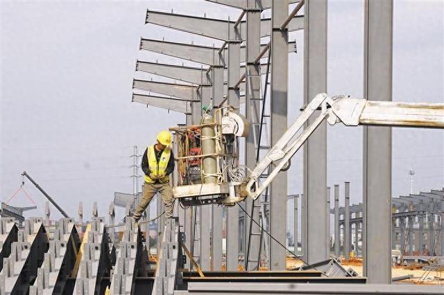 “目前厂房钢结构主体安装已完成总工程量的60%,”现场工程技术人员吴镕菁介绍,“我们正全力冲刺,确保12月底完成全部主体工程,力争春节前实现园区主要道路通车。”