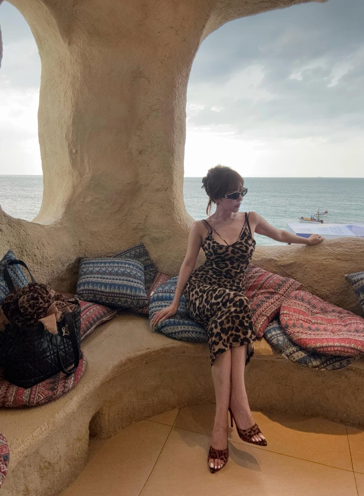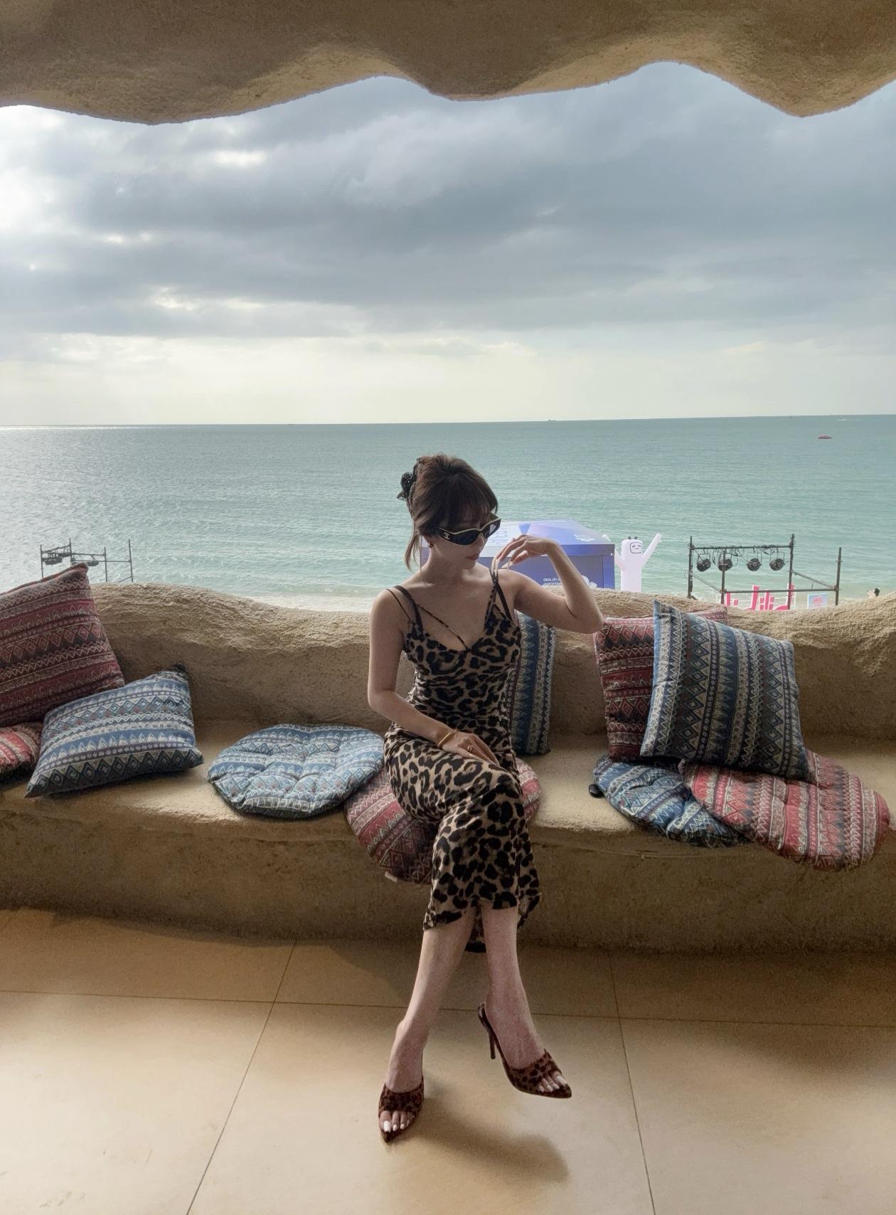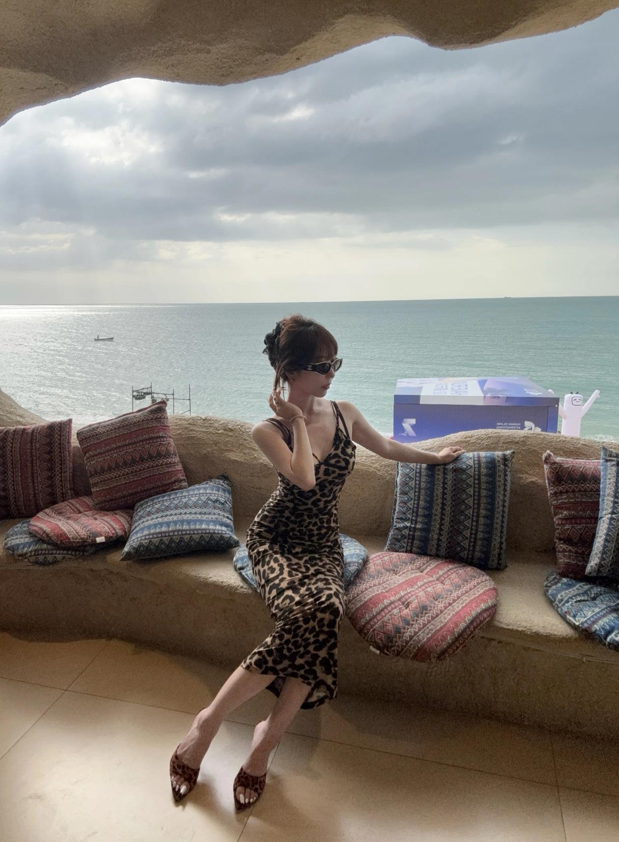 海畔紫光浅紫裙装裹着沙滩的暖意,轻垂的肩带衬得气质舒展,海风掠过发梢时,裙