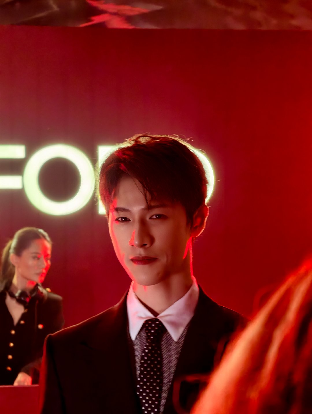 李昀锐让今夜升温 李昀锐身着黑色暗纹西装现身,仅凭一个眼神便将全场氛围点燃。线条