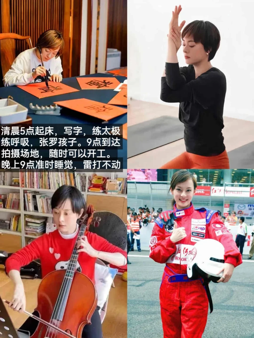 🔘41岁的孙俪考取了大提琴一级证书。一个聚光灯下的女明星,坚持清晨5点起床,写书法,打太极,张罗孩子,练普拉提,健康饮食,还有时间师从书法家童衍方,写得一手漂亮毛笔字。