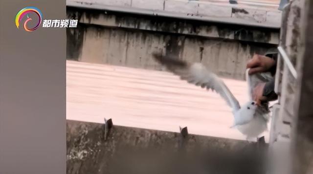 从廖女士拍摄画面中可以看到,受困的红嘴鸥不停在水中扑腾着翅膀,发出叫声,此时在岸边发现情况的垂钓者赶紧回拉绳线查看。