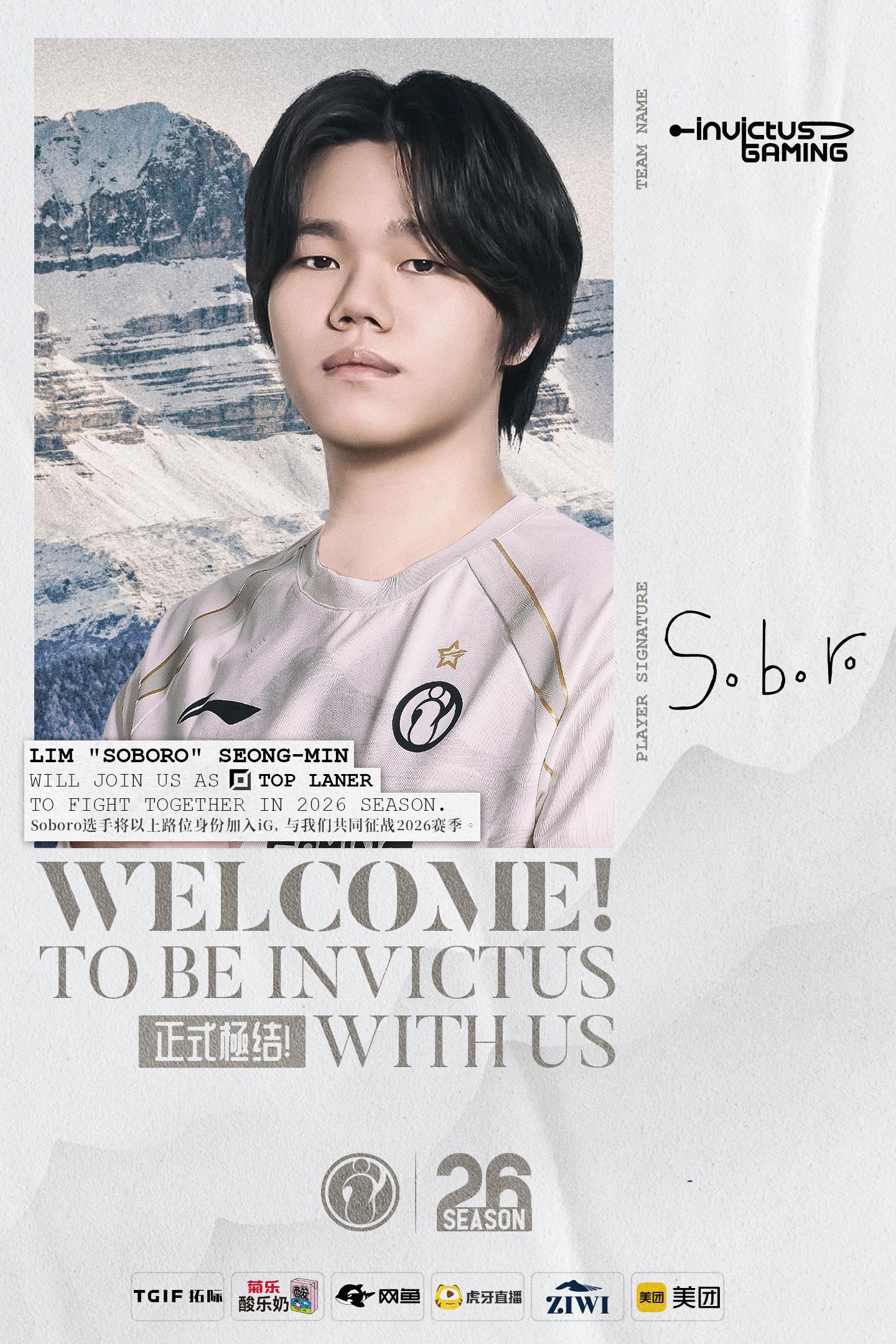 经过与选手的积极沟通以及友好协商后,我们高兴地向大家宣布:即日起,选手林成玟(游戏ID:Soboro)正式加入iG英雄联盟分部担任上路位。