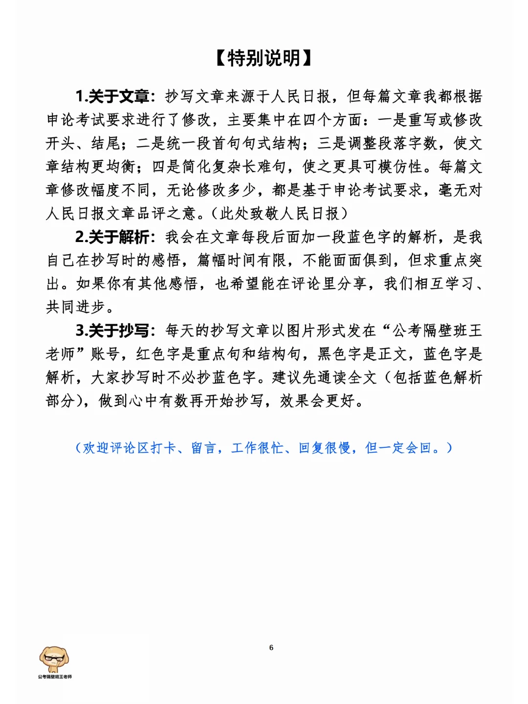 这里是公考隔壁班王老师独创的“每天半小时・申论80分”抄写团,欢迎加入我们!