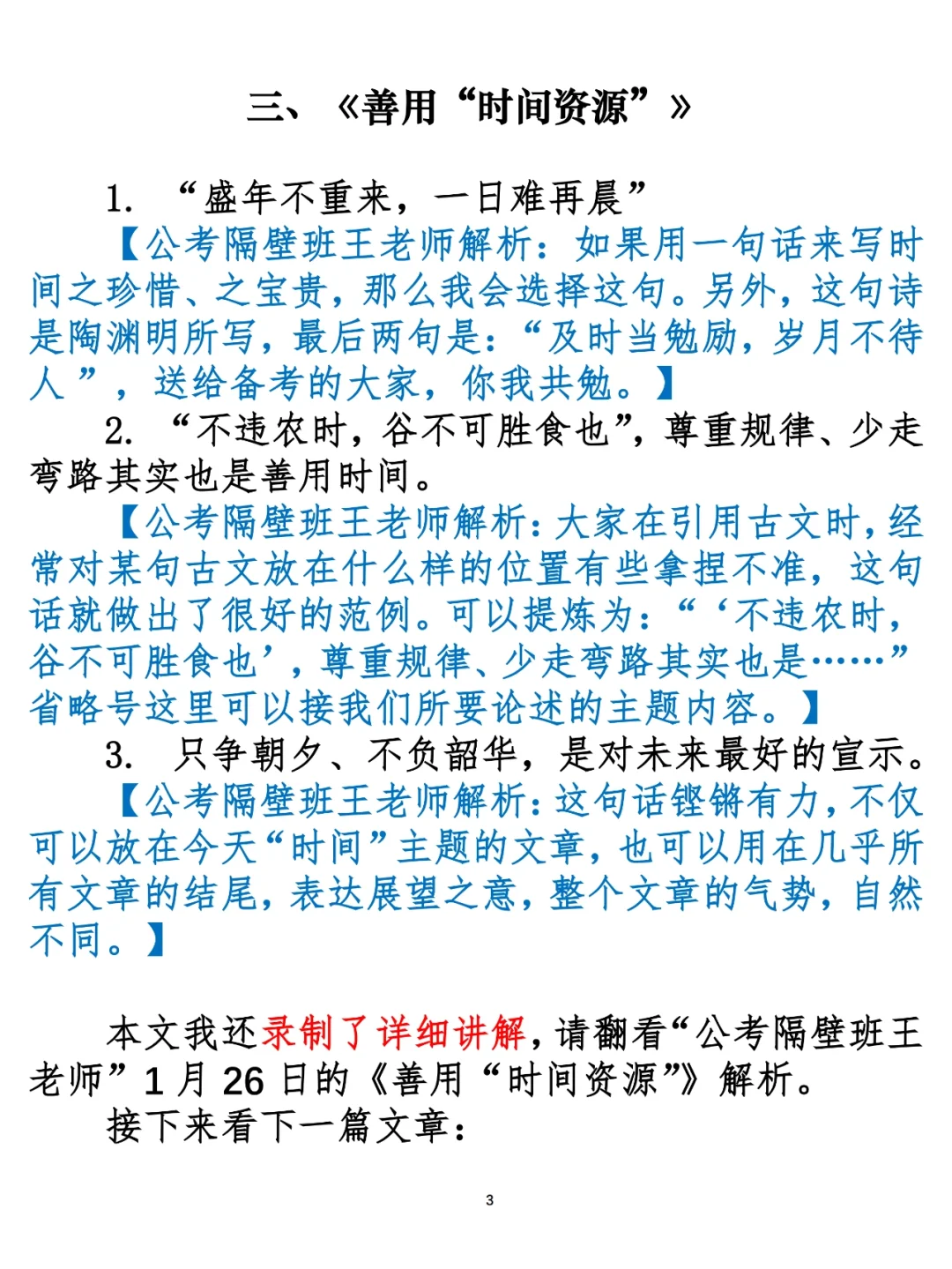 3.《善用“时间资源”》(1.26日,周三)