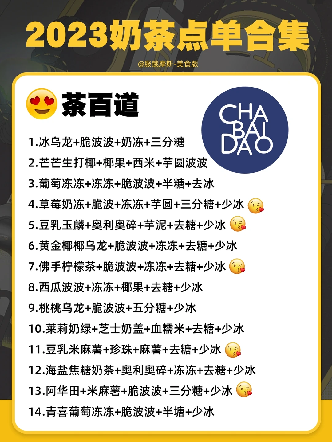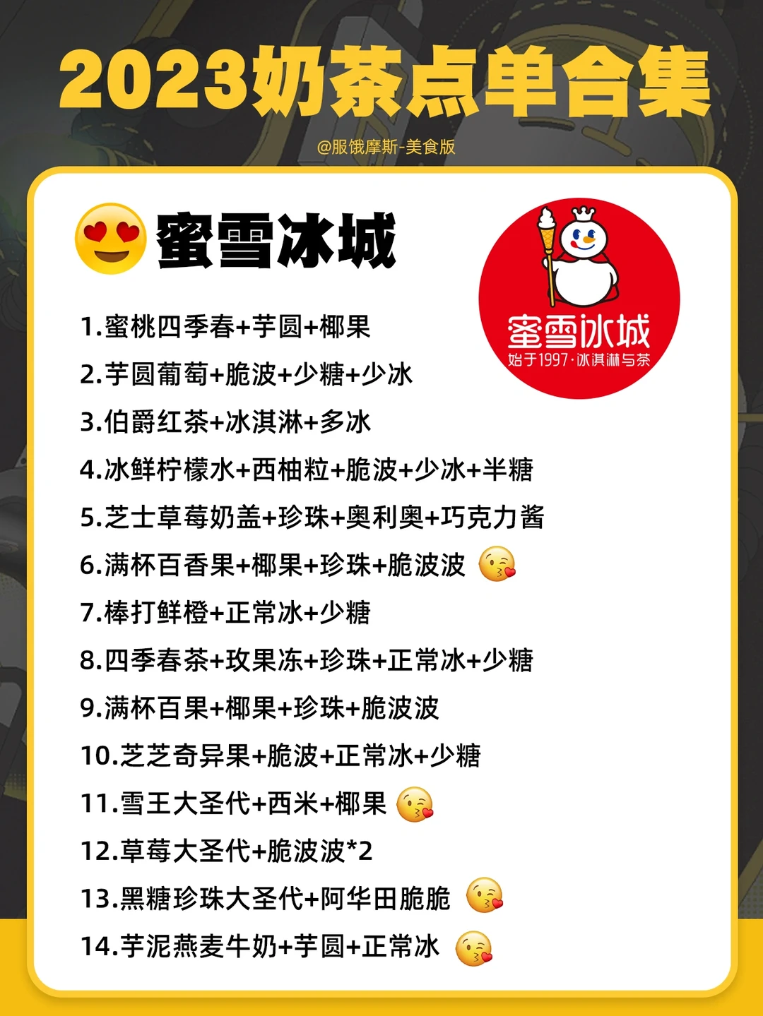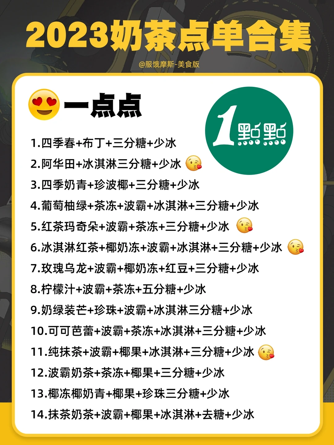 2023最强奶茶点单攻略,亲测不踩雷。 1.蜜雪冰城 2.一点点 3.沪上阿姨 4.茶百道 5.Coco 6.益禾堂 喜欢喝奶茶的姐妹,赶紧码住啦!!!