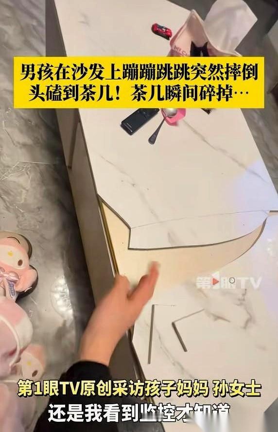 我跟你讲,要不是看了监控,我可能现在还在为那张破桌子生气。 监控里,就那么一下,毫无征兆。 老大在沙发上站起来,脚一崴,整个人直挺挺地往后倒。 后脑勺,正对着那个岩板茶几的边儿,Duang!的一声闷响。 桌子,炸了。 碎得跟蜘蛛网一样。 那一瞬间,我感觉心跳都停了。 不是心疼桌子,是后怕。 如果那不是个一撞就碎的岩板,如果那是块扎扎实实的大理石……我脑子嗡的一下,不敢再往下想了。 吃饭的时候,俩小子才敢小声说。我一开始火气真挺大的,又是谁淘气了? 可当我调出监控,看到那一幕的时候,什么火气都没了,全是冷汗。 上一秒还在气头上,下一秒就只想抱着孩子哭。 什么家具,什么钱,在孩子脑袋没事儿这四个字面前,算个屁啊。 以前总觉得家是最安全的地方。 现在才明白,家里那些我们习以为常的桌角、柜门、光滑的地板,对一个横冲直撞的小孩来说,处处都是“凶器”。 真的,安全这事儿,没有侥幸。