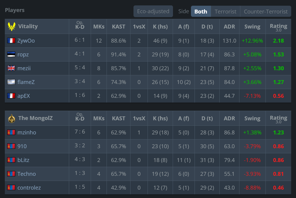 虎扑12月12日讯在今日进行布达佩斯Major八进四淘汰赛中,Vitality战队以2-0的比分干净利落地击败TheMongolZ,顺利晋级。然而,队内指挥apEX在本场比赛中个人数据表现低迷,成为队伍中相对薄弱的一环。