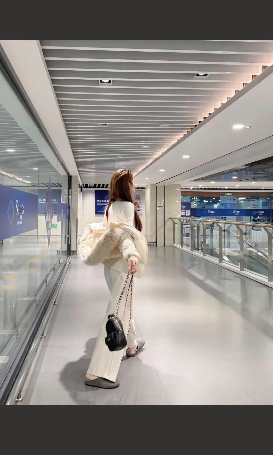 米色羽绒服搭配同色系裤装,温暖又时尚!🌟👗👖