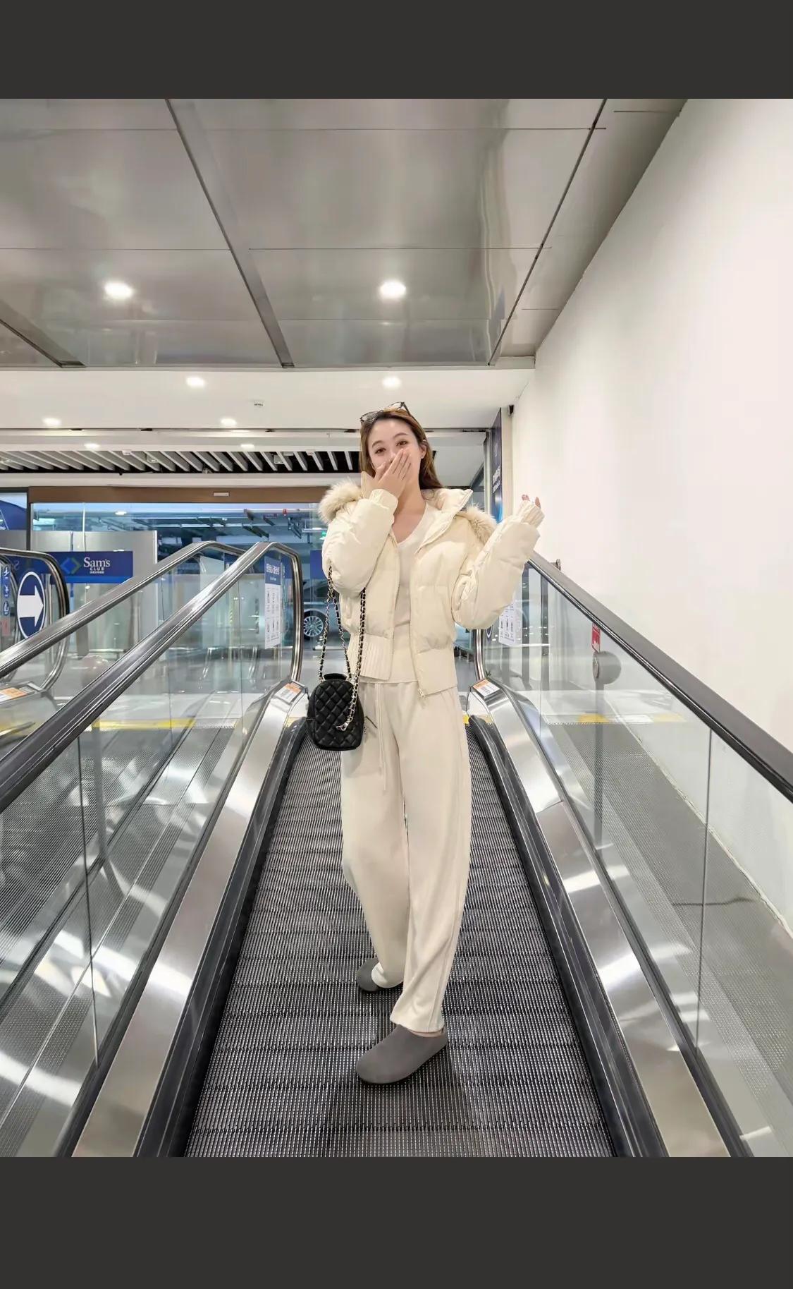 蔡依林这组机场look把“潮酷松弛感”焊在身上了吧!💙宝蓝色短款羽绒服自