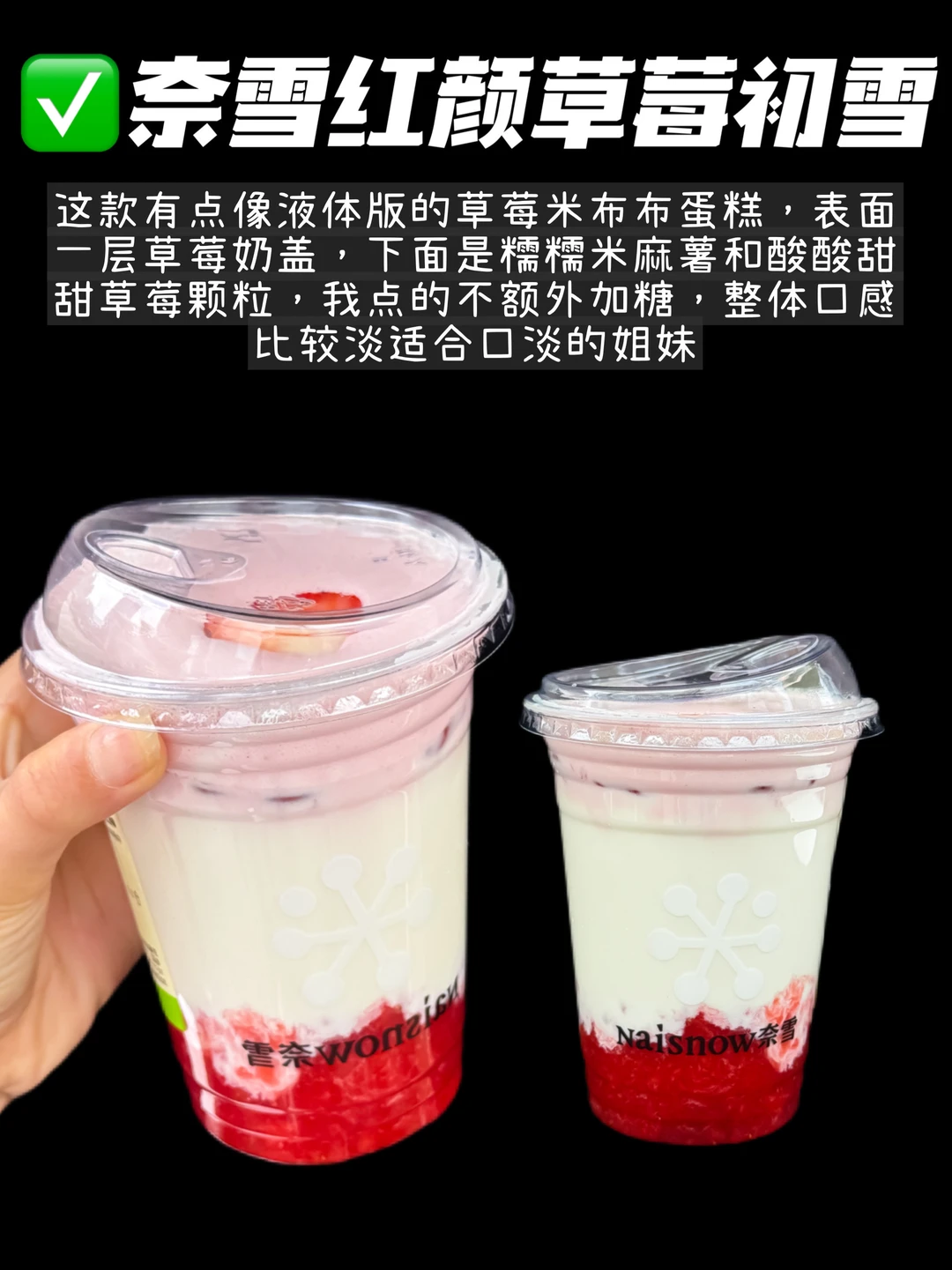 这款有点像液体版的草莓米布布蛋糕,表面一层草莓奶盖,下面是糯糯米麻薯和酸酸甜甜草莓颗粒,我点的不额外加糖,整体口感比较淡适合口淡的姐妹
