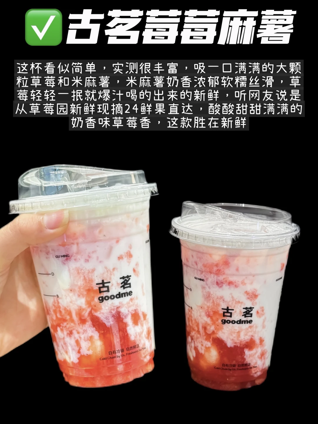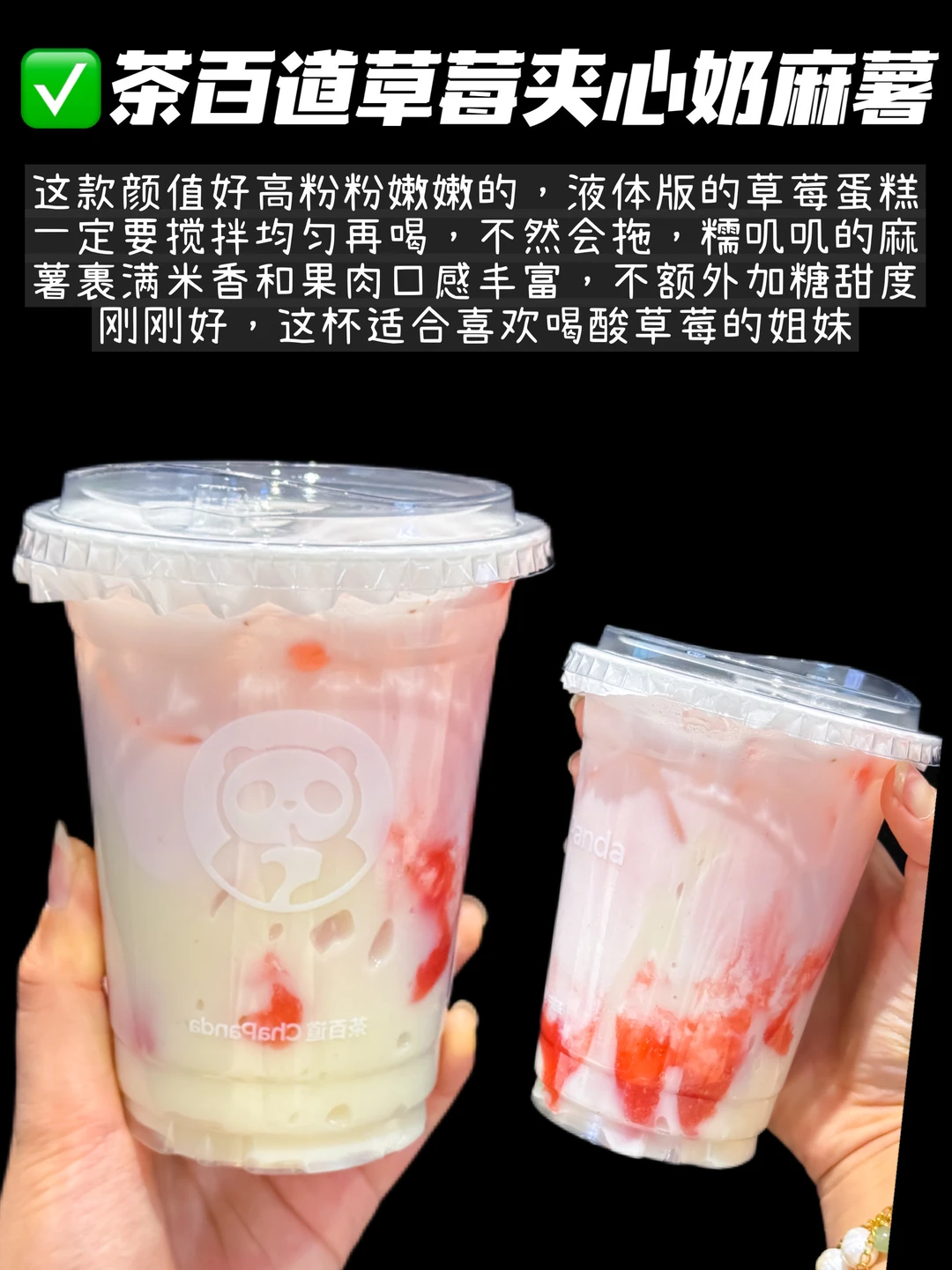 这杯看似简单,实则很丰富,吸一口脆甜草莓果肉和米麻薯,米麻薯奶香浓郁软糯丝滑,草莓轻轻一抿就爆汁喝的出来的新鲜,听说是从草莓园新鲜现摘24鲜果直达,酸酸甜甜满满的草莓香,草莓就得吃新鲜的