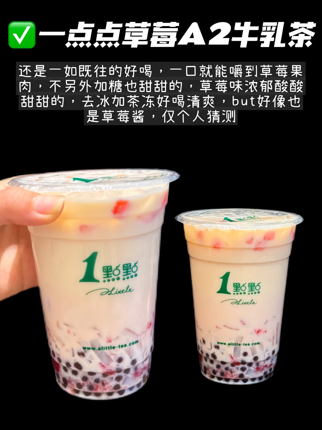 还是一如既往的好喝,一口就能嚼到草莓果肉,不另外加糖也甜甜的,草莓味浓郁酸酸甜甜的,去冰加茶冻好喝清爽,but好像也是草莓酱,仅个人猜测
