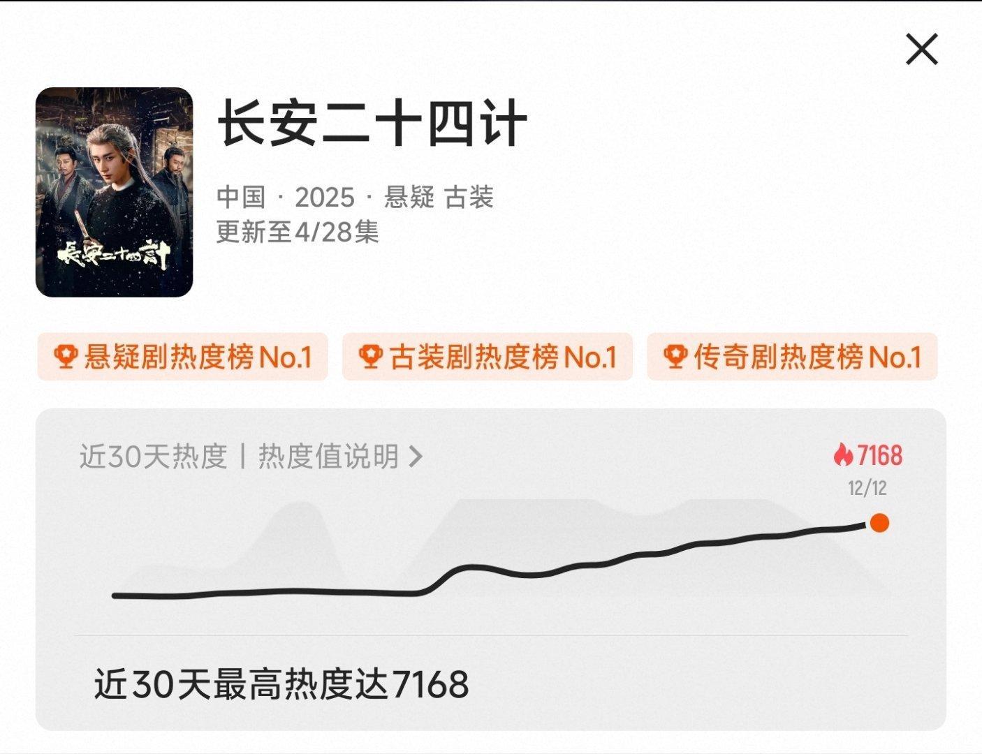 长安二十四计热度双轨热度 成毅主演《长安二十四计》最高热度7128。虞书欣,何与