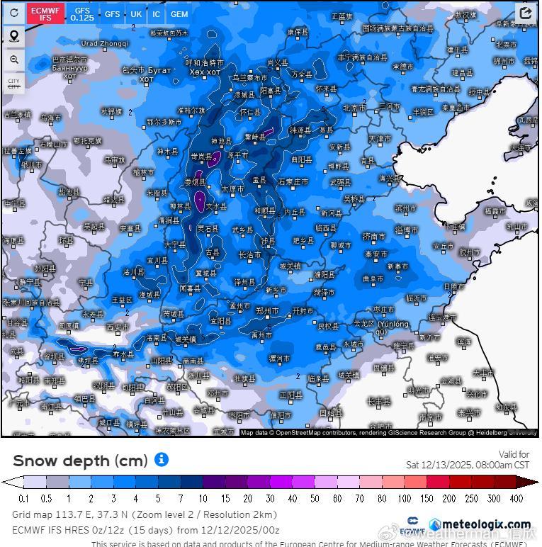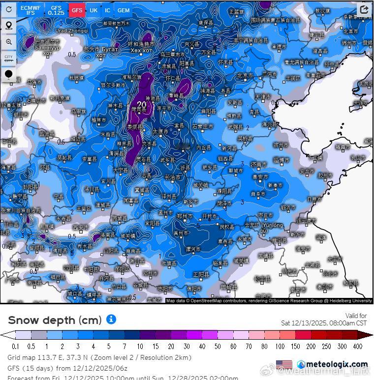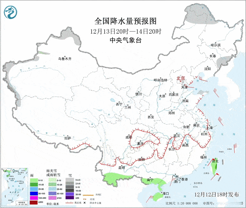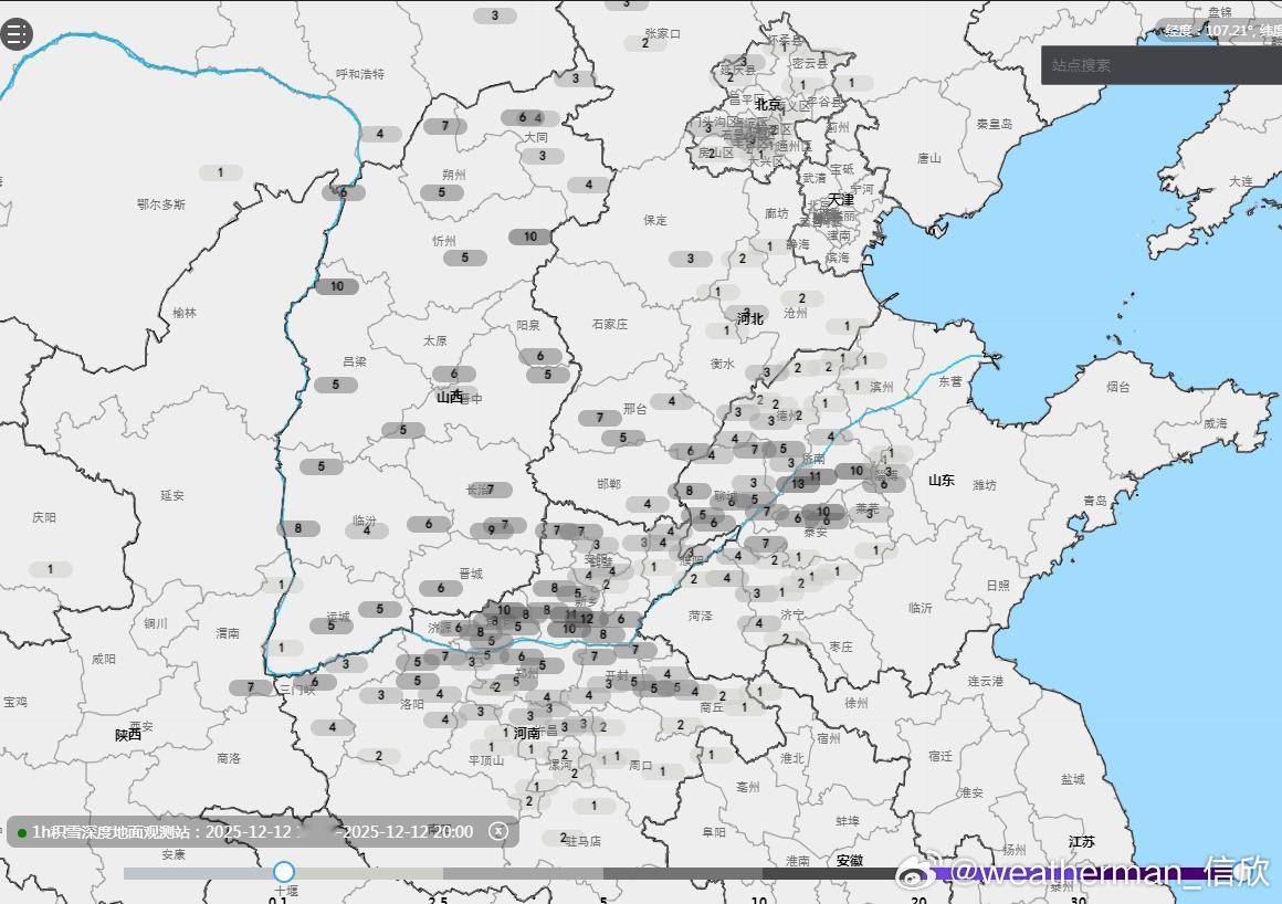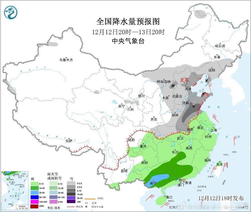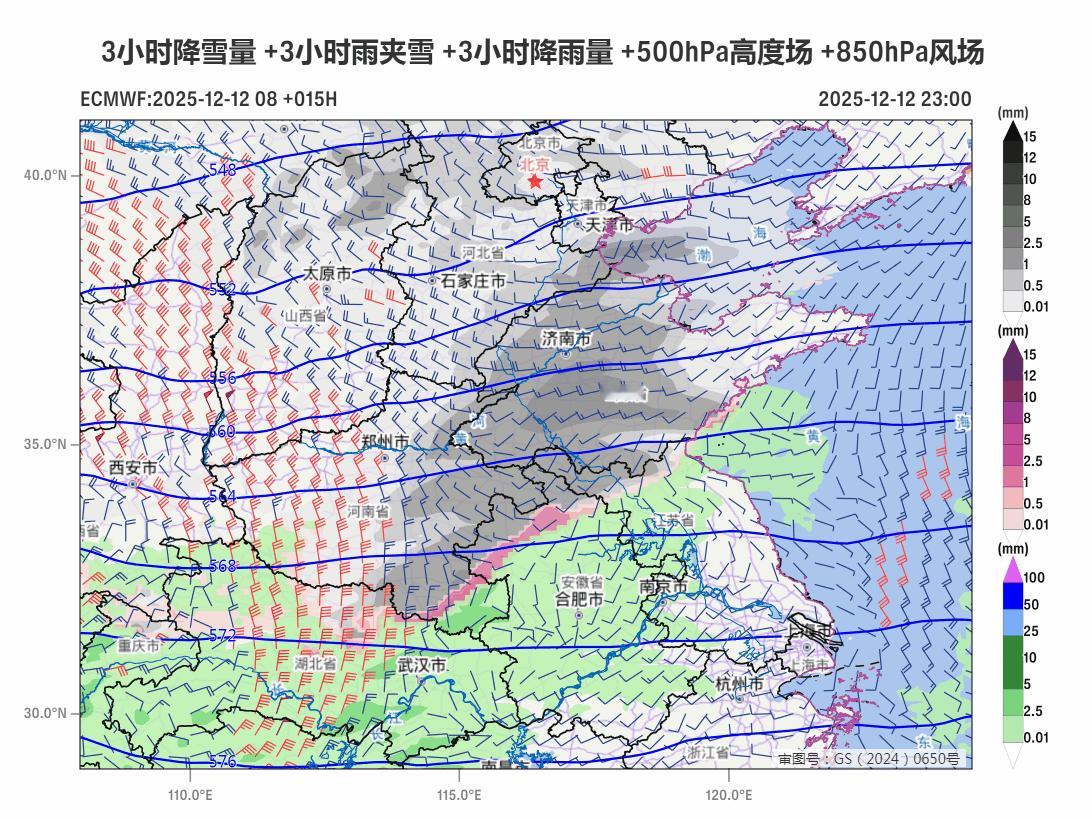 【雨雪】昨晚到今天,西风带上南支槽和北支槽配合,导致我国中东部出现大范围雨雪。陕西北部、山西多地、河南中北部、河北南部、山东西部等地出现大雪,局地暴雪。太原老国家站、郑州、济南,均达到了大雪级别。今晚20时,济南积雪11厘米、郑州5厘米、太原6厘米。此外目前上报数据中,部分省区市20时积雪较深的有:河南延津12厘米、新乡11厘米、原阳10厘米、焦作10厘米、山西兴县10厘米、五台山10厘米、长治9厘米、山东长清13厘米、泰山10厘米、章丘10厘米、河北邢台7厘米。北京海淀、石景山、门头沟都是4厘米。今晚到明天,降雪会向东推进,略有南下。南侧的降雪边缘在连云港北部(城区主要是雨)-徐州-淮北-宿州-亳州-阜阳一带,对应0℃层高度不足500米,而且主要是今夜到明晨。明天白天,干冷空气南下,水汽基本就没了,北方降雪总体收敛。明天白天在辽东半岛和山东半岛可能还有冷流降雪。预计12月12日20时至12月13日20时,山西东北部、山东东北部和南部、辽东半岛西部、河南东南部、安徽北部、江苏北部等地部分地区有大雪(5~8毫米)。上述部分地区新增积雪深度3~8厘米,局地可达10~12厘米以上。另外,广西南部等地有大雨。后天开始,我国大部地区,又进入一段降水稀少的时期。17-19日可能有南支槽发展东移,给西南地区、江南、华南等地带来一次降雨过程。而北方地区,主要是新疆北部、东北北部,可能因为冷空气活动,带来一些降雪。