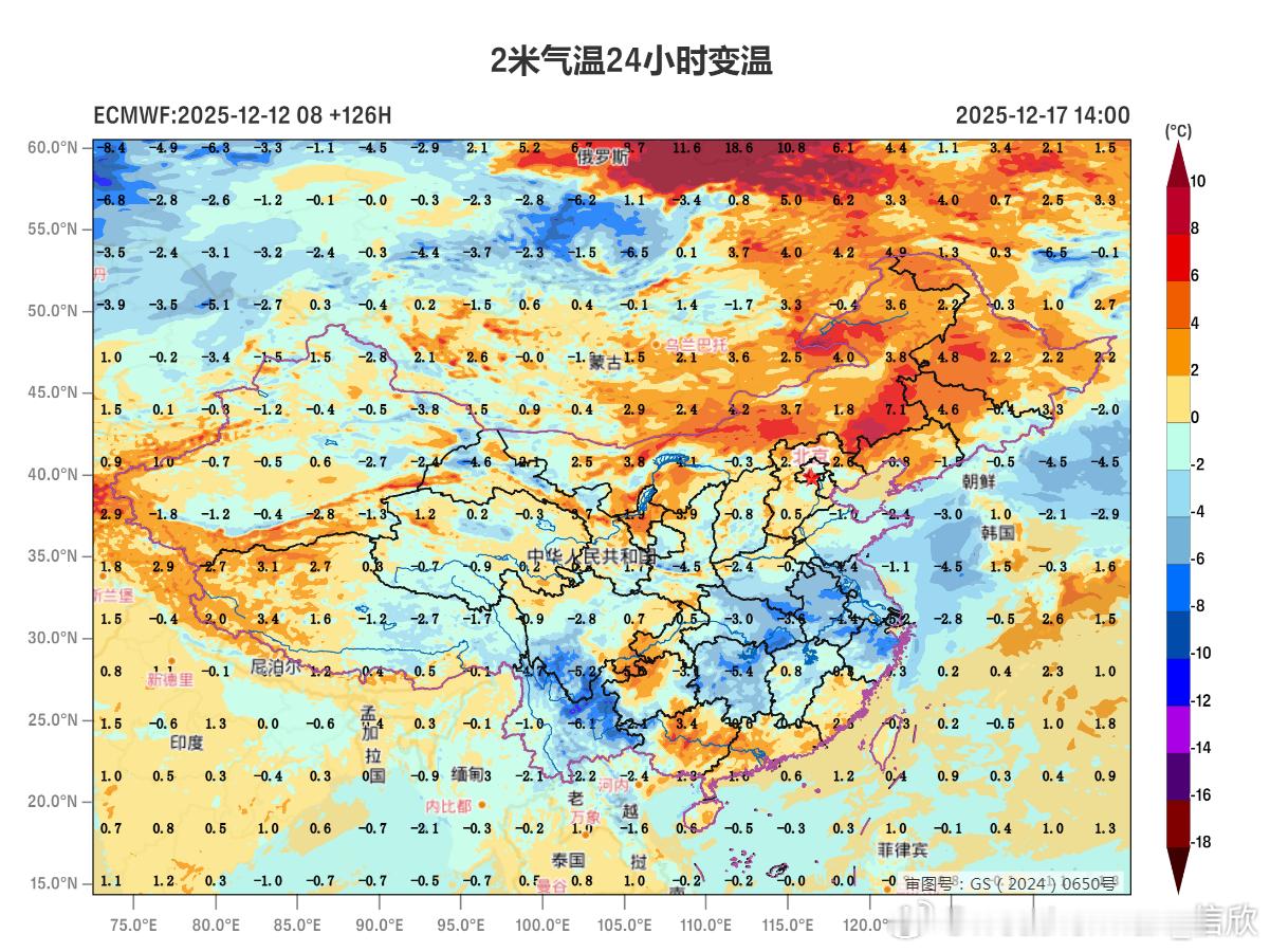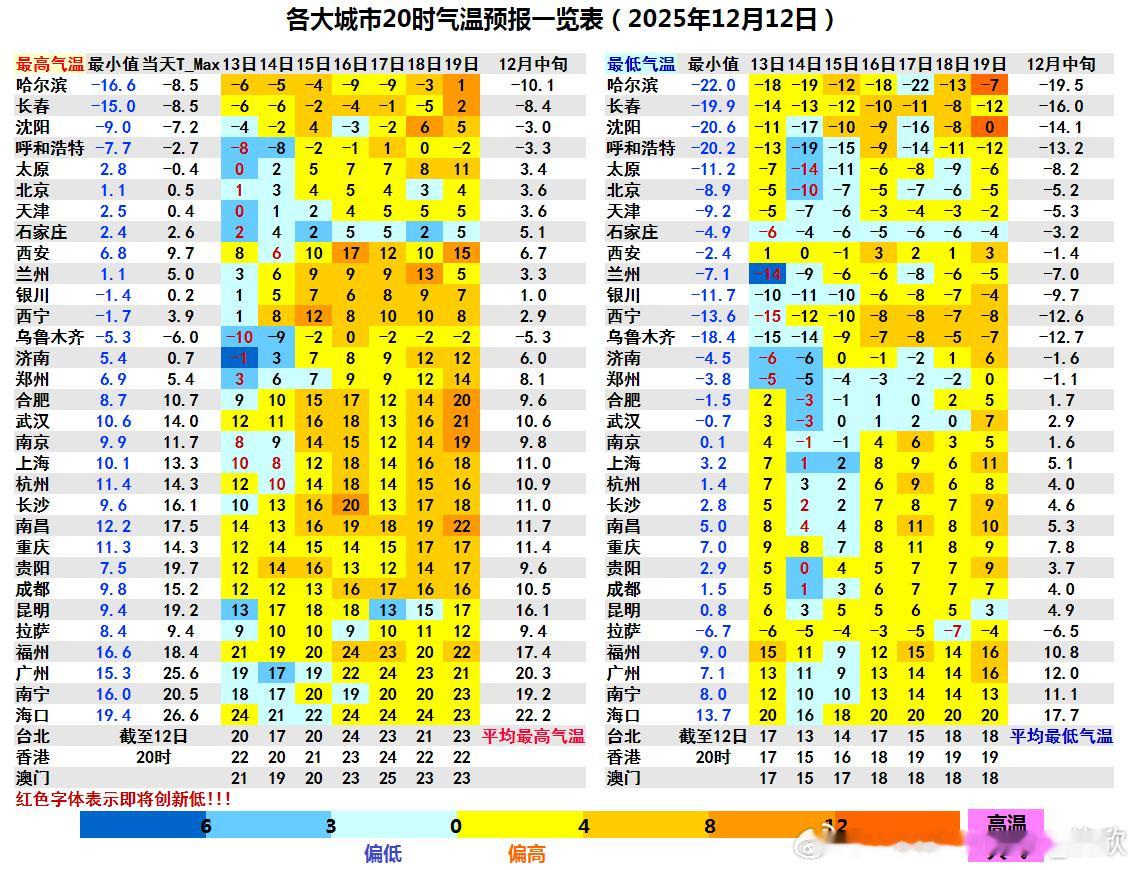 【气温创新低后再迎大回暖】明天寒潮会继续南下,重点影响南方。江西广东广西贵州云南东部等地降温可能超10℃。预计12月14日早晨,最低温度0℃线将南压至浙江南部、江西北部、湖北南部一带。14日晨从华北到江南和西南多地气温可能创立冬后新低,北京可能降至零下10℃、南京降至零下1℃。不过14日白天,我国大部地区的气温就会回升(今天降温剧烈的青海、甘肃一带,明天就能升温)。从后期的大趋势看,冷空气势力弱,高空还有暖脊东移。因此本轮寒潮过后,我国大部地区的气温又会回升到偏高的状态,16日长沙预计最高可20℃,19日合肥、武汉、南昌也可能重返20℃。