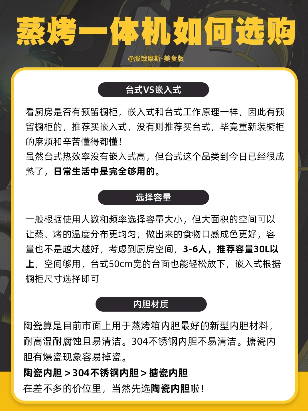 🎈顺便给大家看看我之前买蒸烤一体机时做的选购攻略,帮忙大家少踩坑。