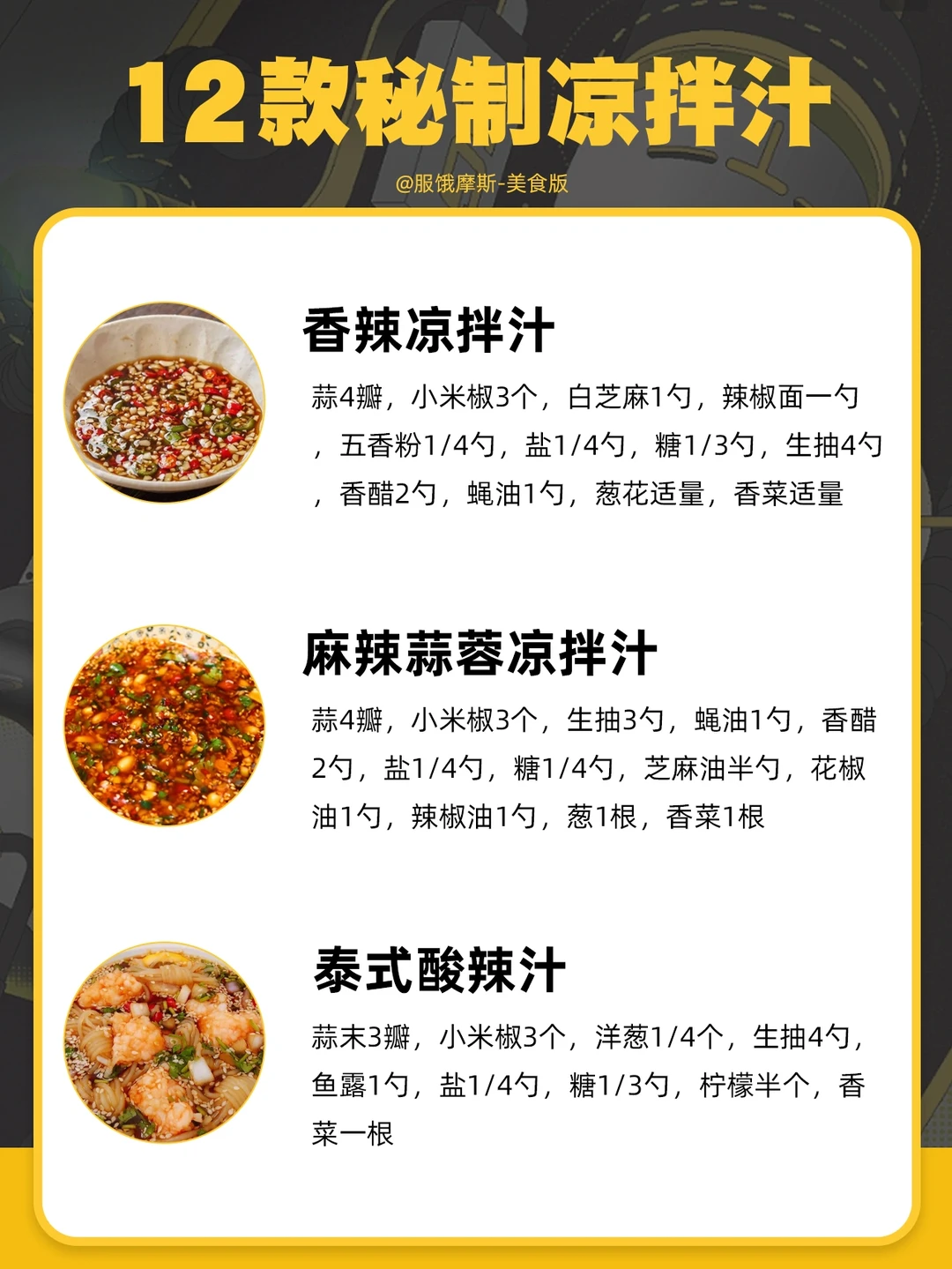 🔥12款万能凉拌汁,拌鞋底都好吃😋😋