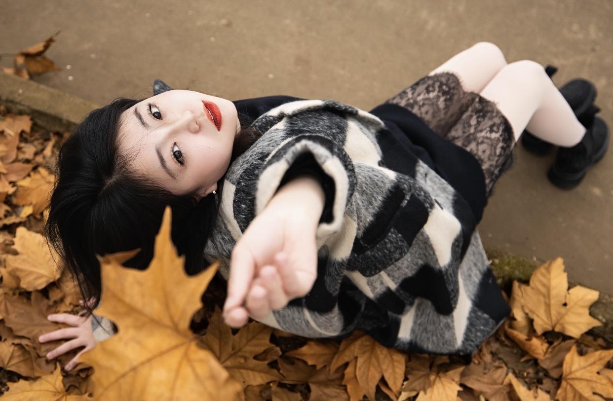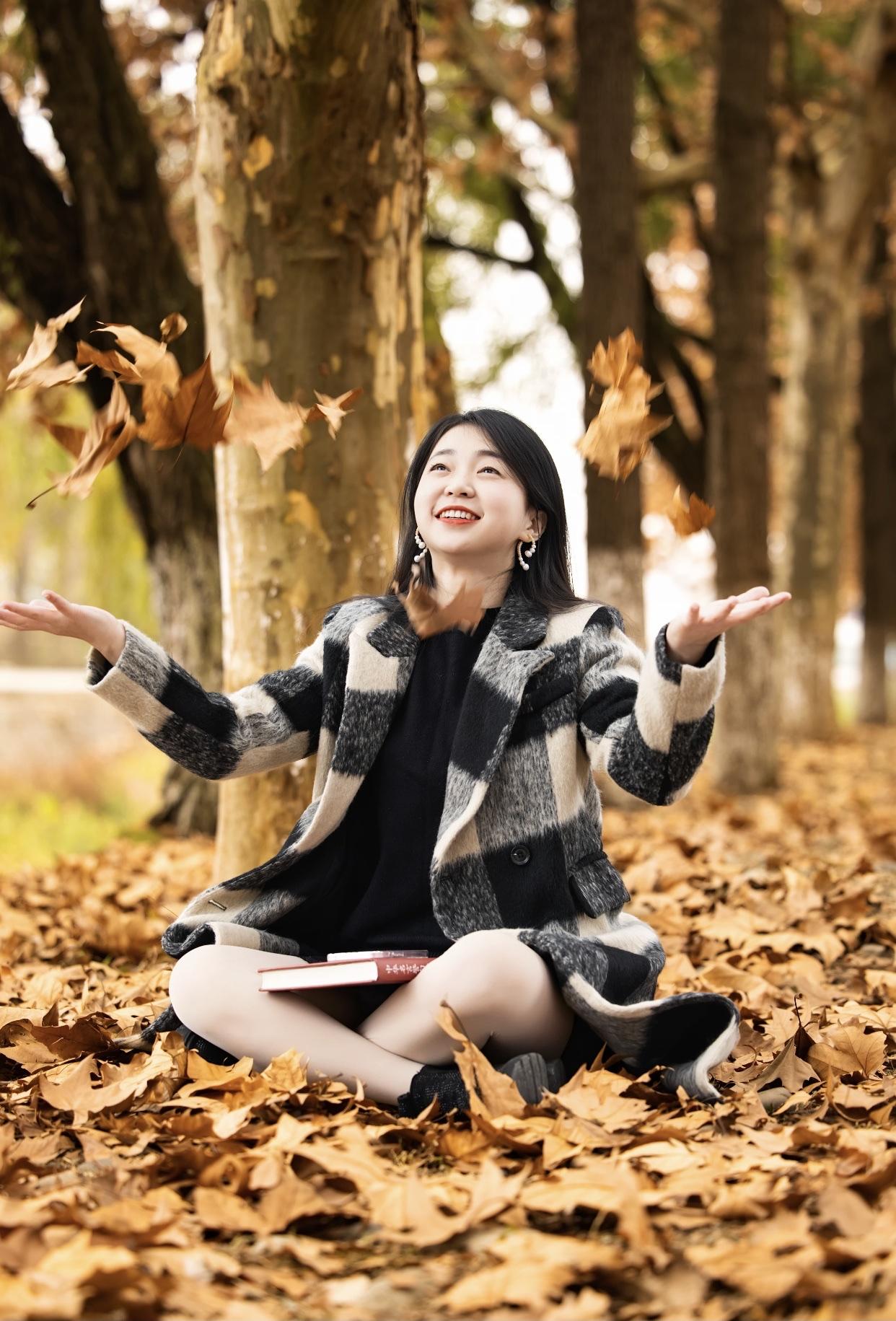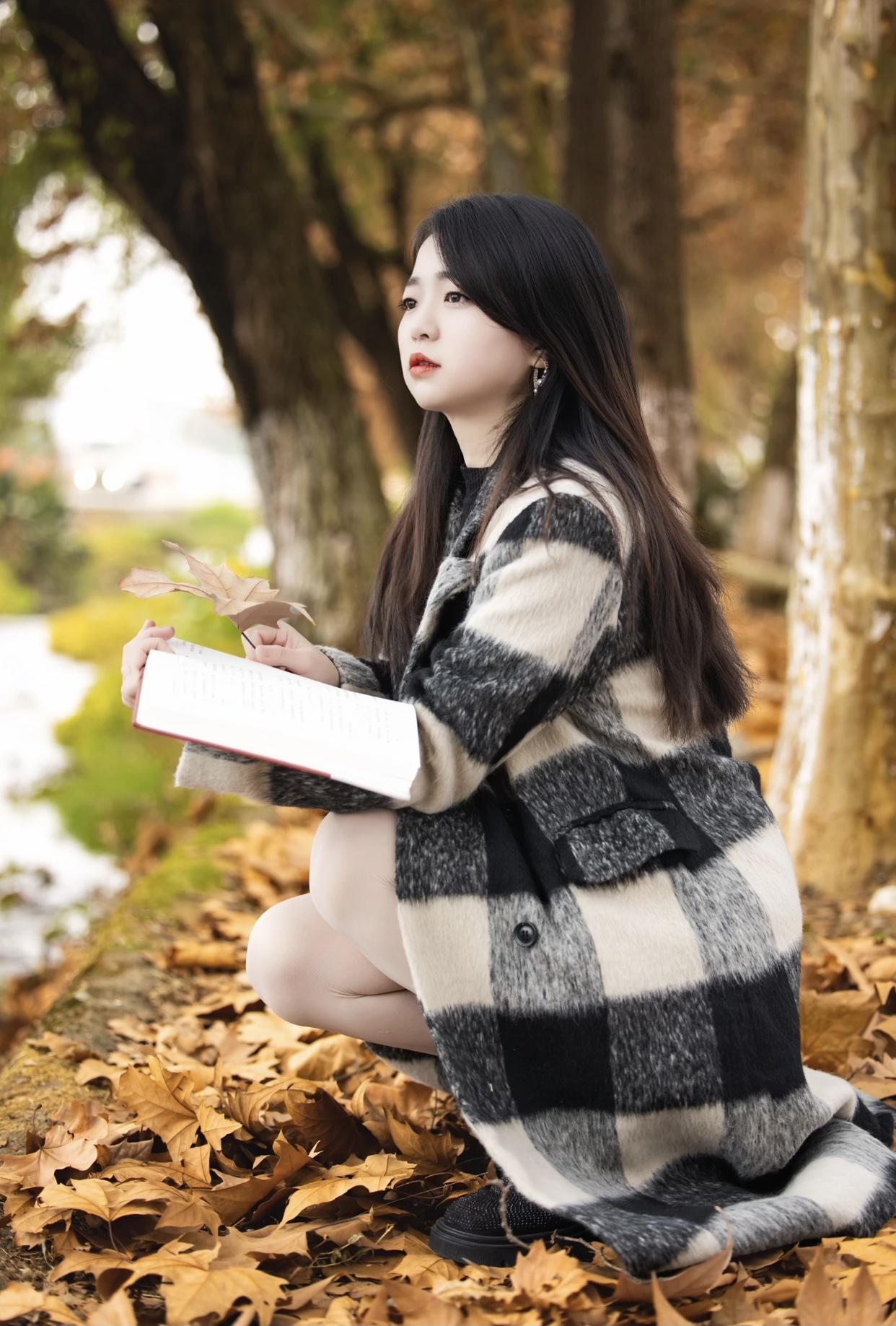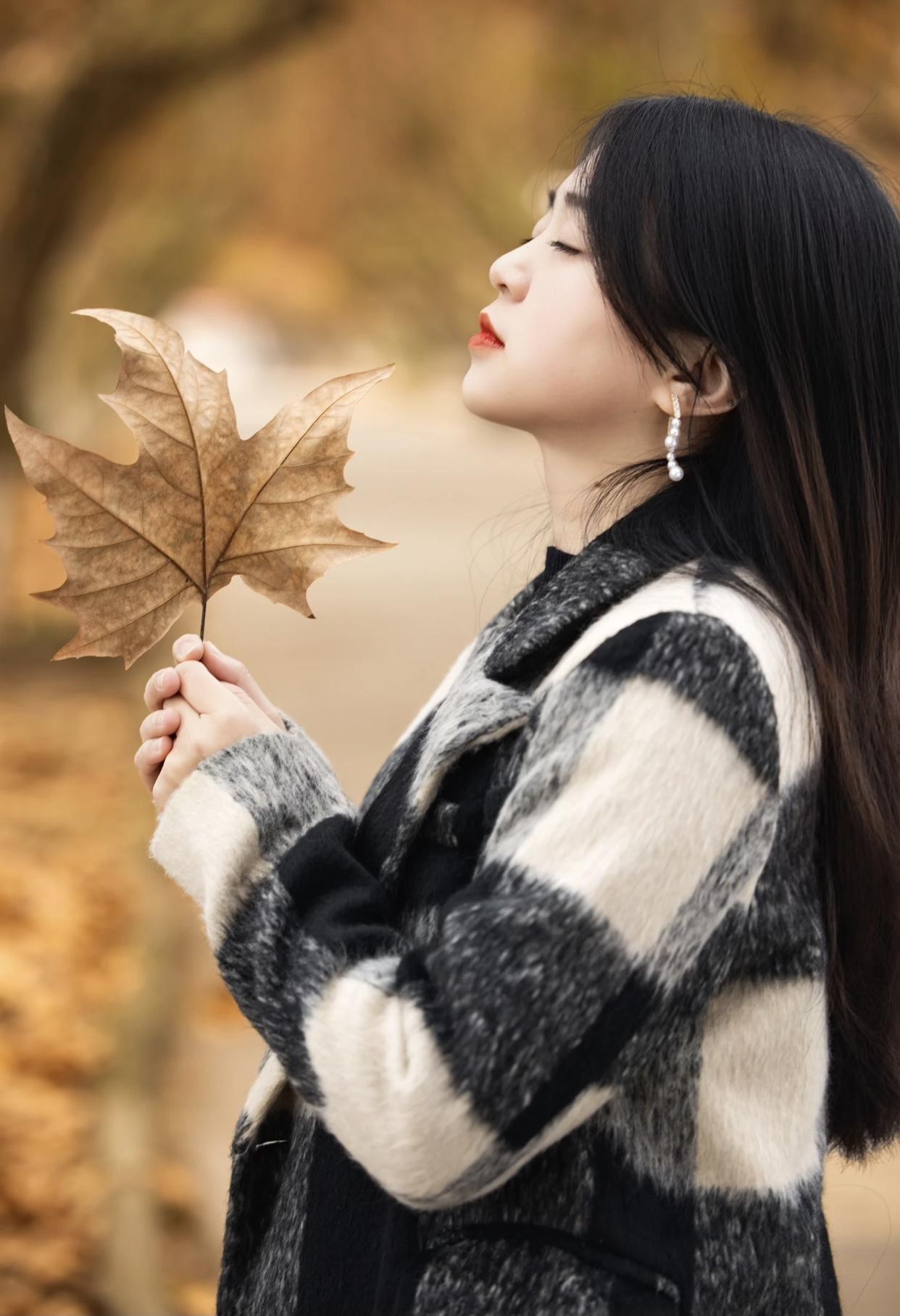 秋日漫步,黑白格纹大衣搭配透明伞,优雅动人。